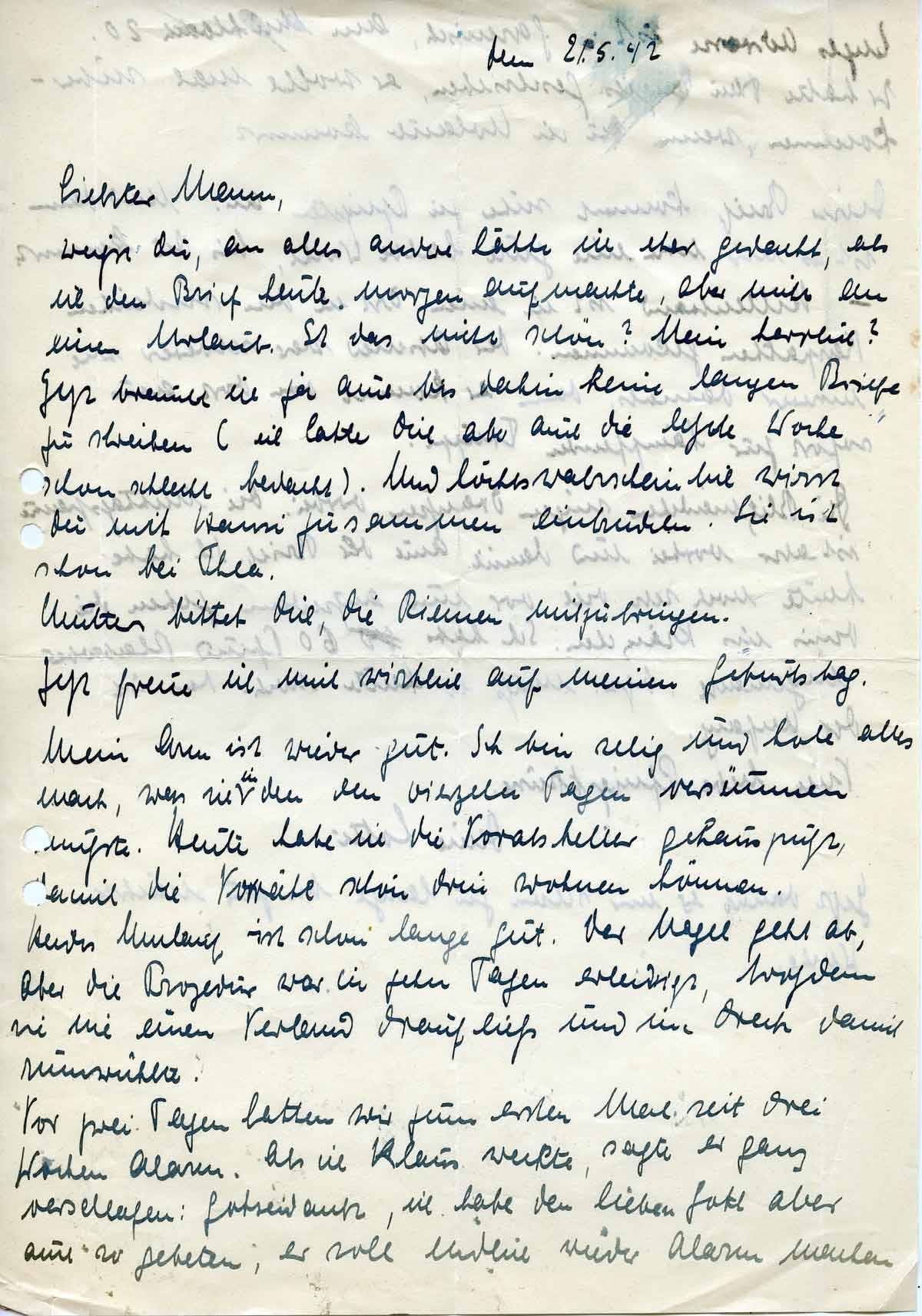 Charlotte Endemann an ihren Mann Harald, 21. Mai 1942