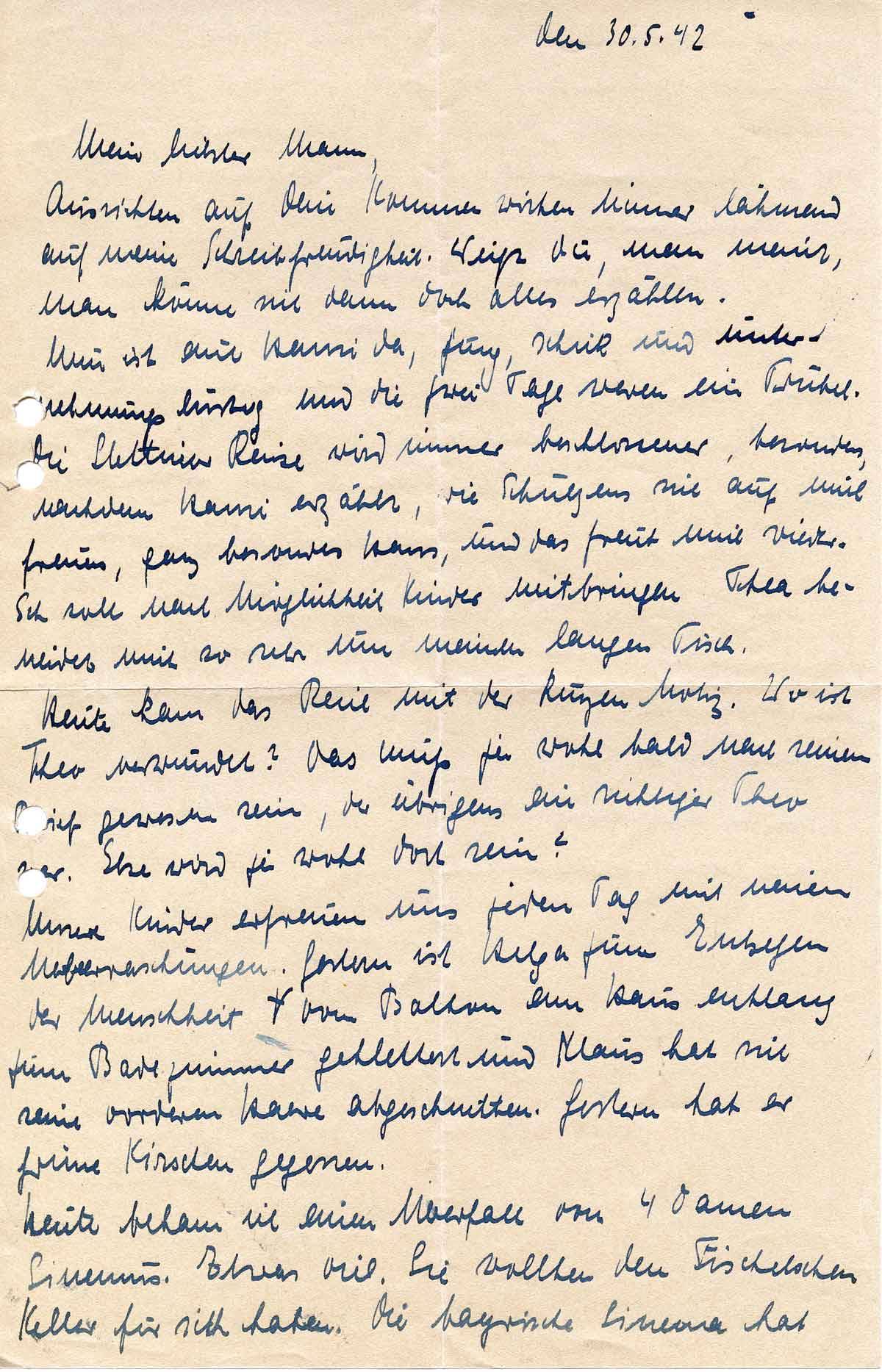 Charlotte Endemann an ihren Mann Harald, 30. Mai 1942