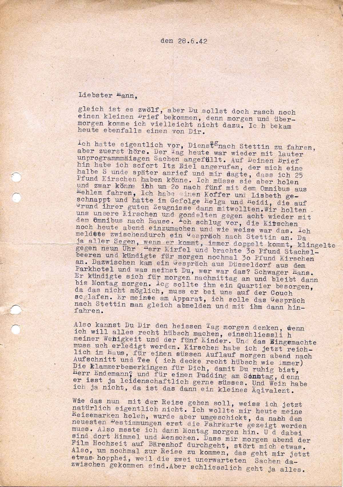 Charlotte Endemann an ihren Mann Harald, 28. Juni 1942