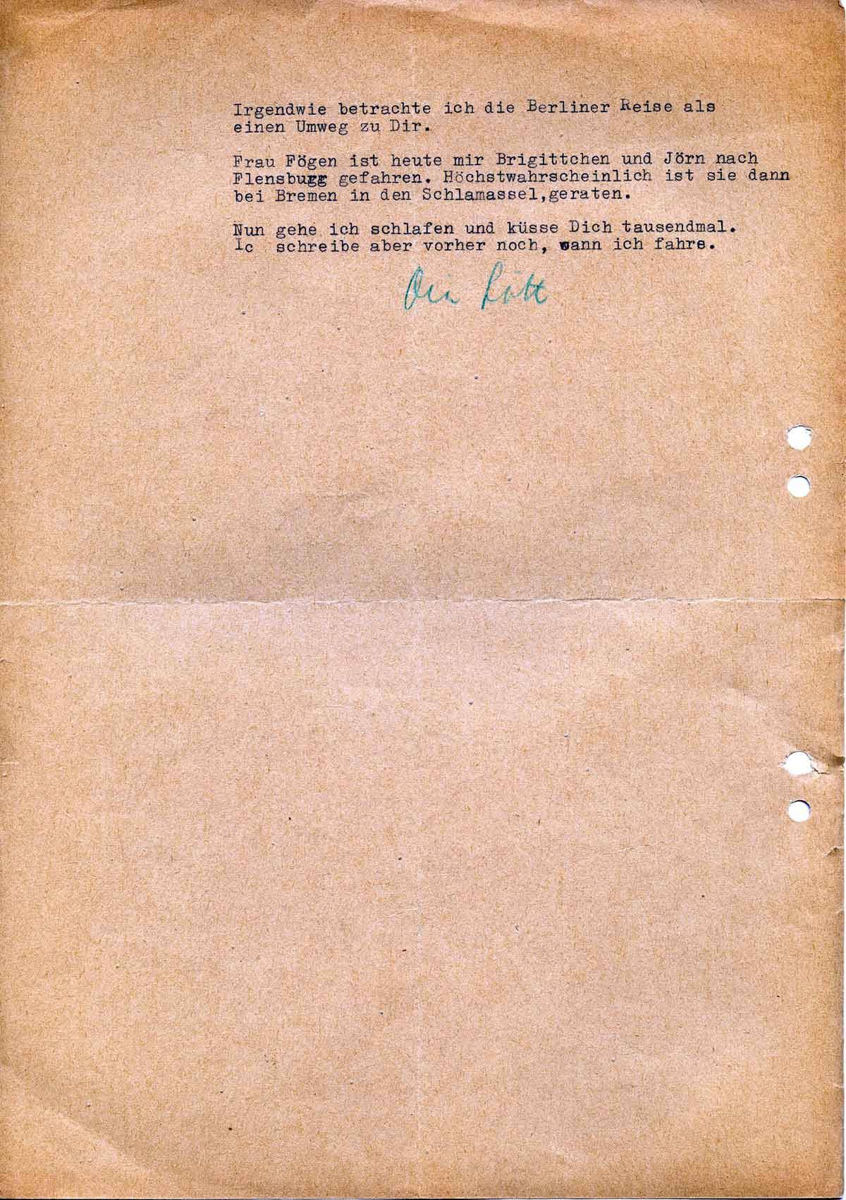 Nun gehe ich schlafen und küsse Dich tausendmal. Ich schreibe aber vorher noch, wann ich fahre. Din Lött