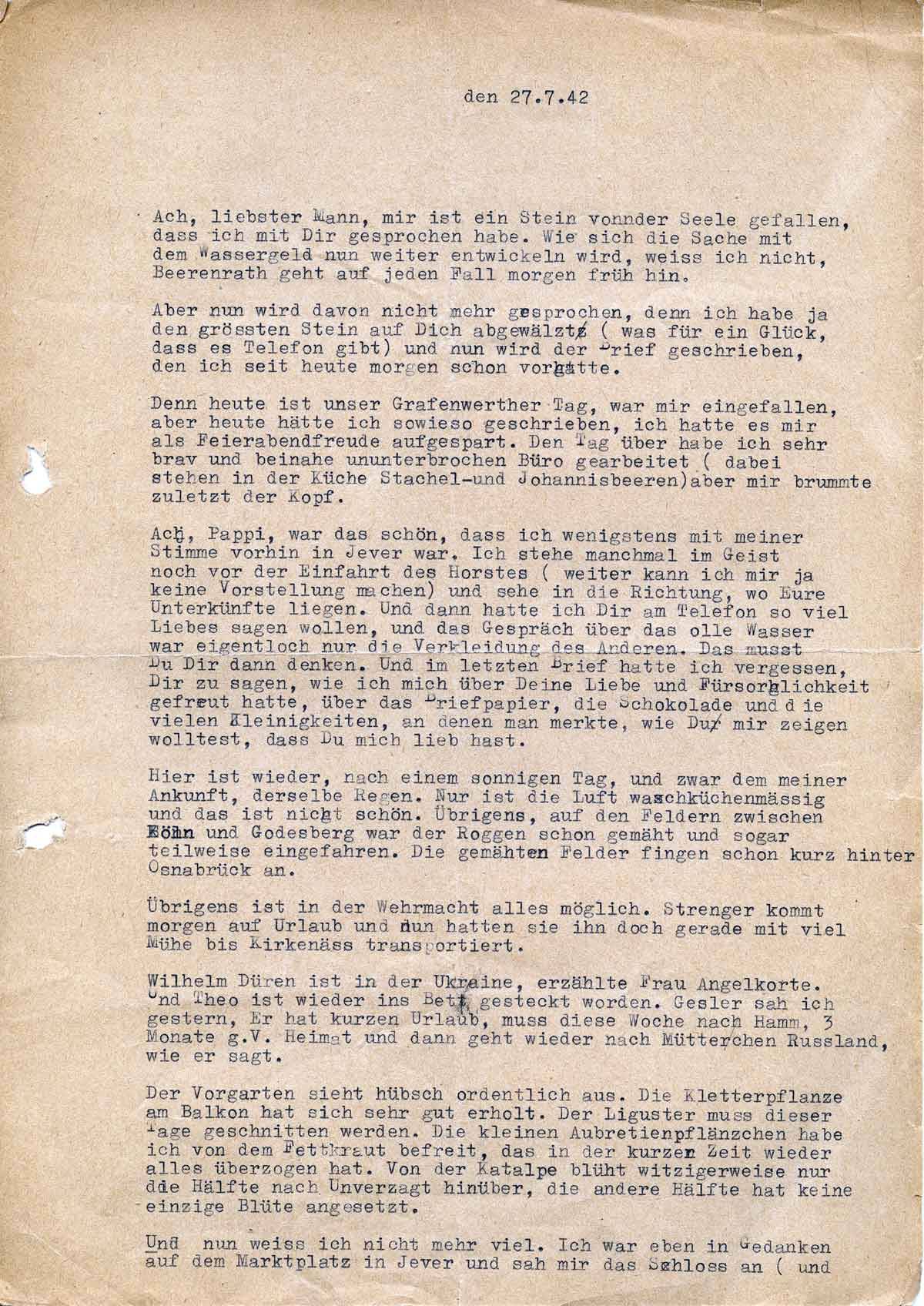 Charlotte Endemann an ihren Mann Harald, 27. Juli 1942