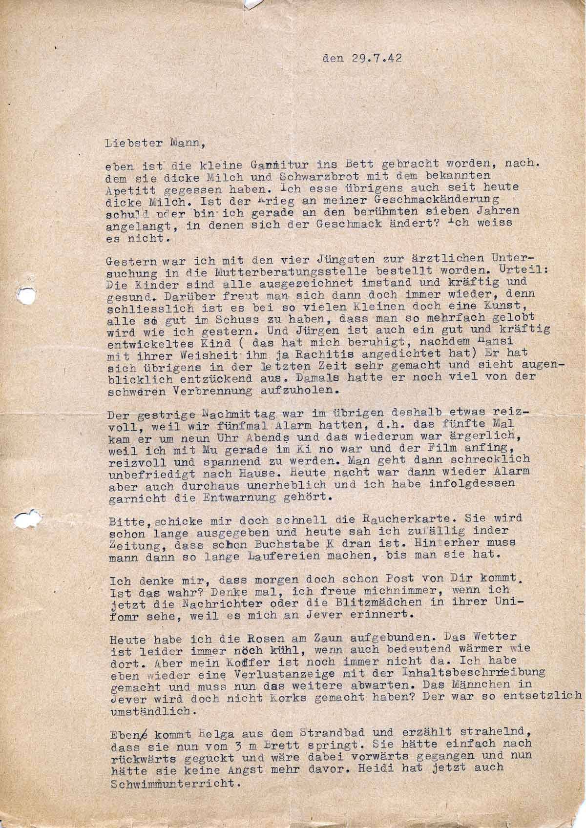 Charlotte Endemann an ihren Mann Harald, 29. Juli 1942