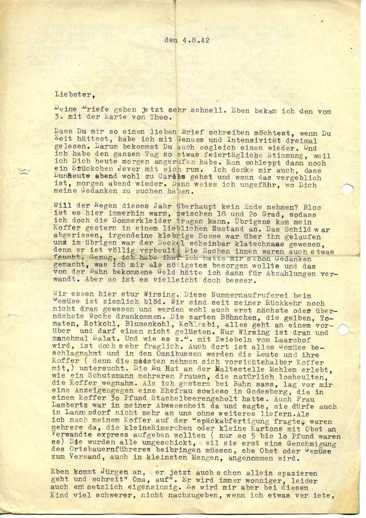 Charlotte Endemann an ihren Mann Harald, 4. August 1942