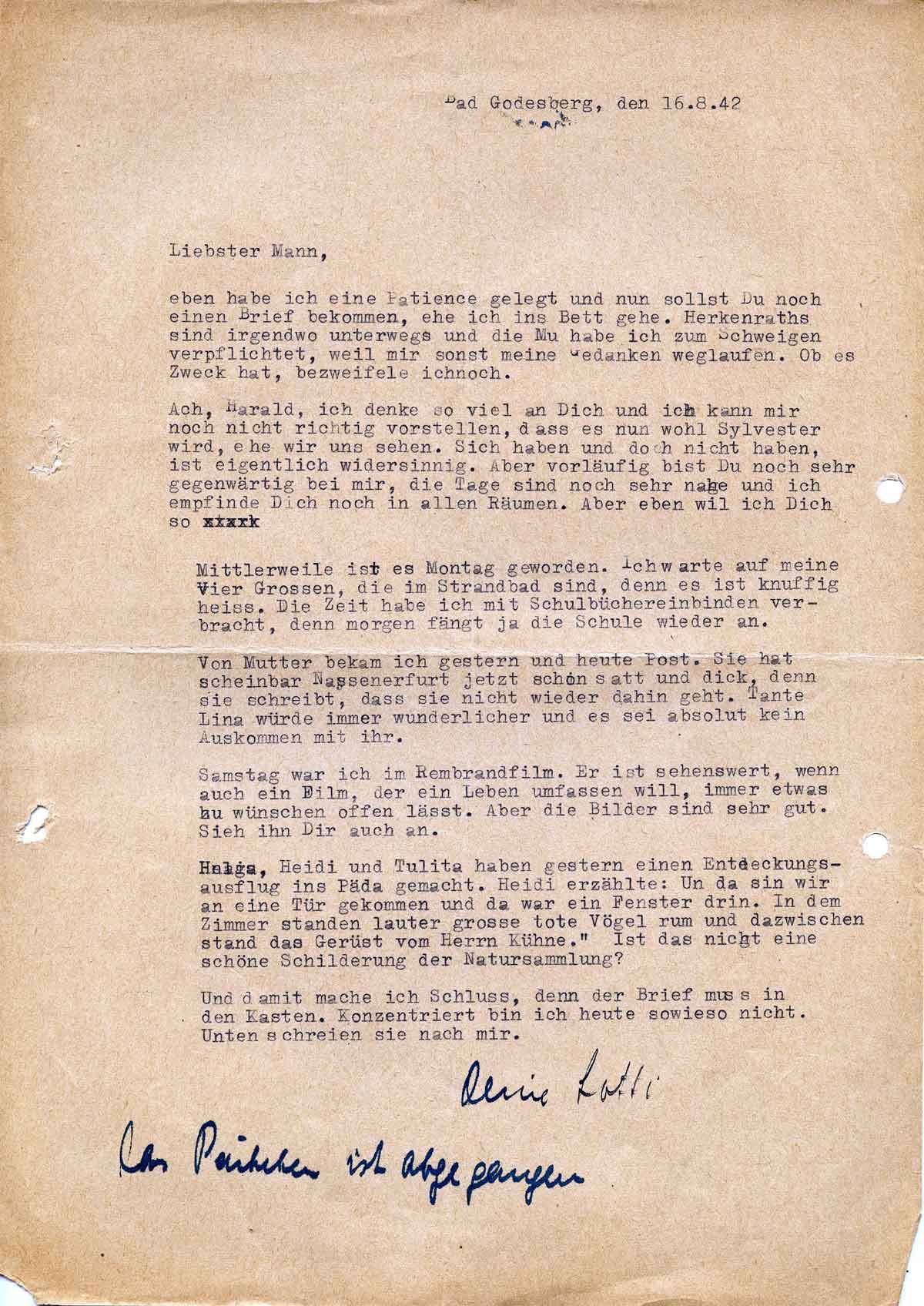 Charlotte Endemann an ihren Mann Harald, 16. August 1942