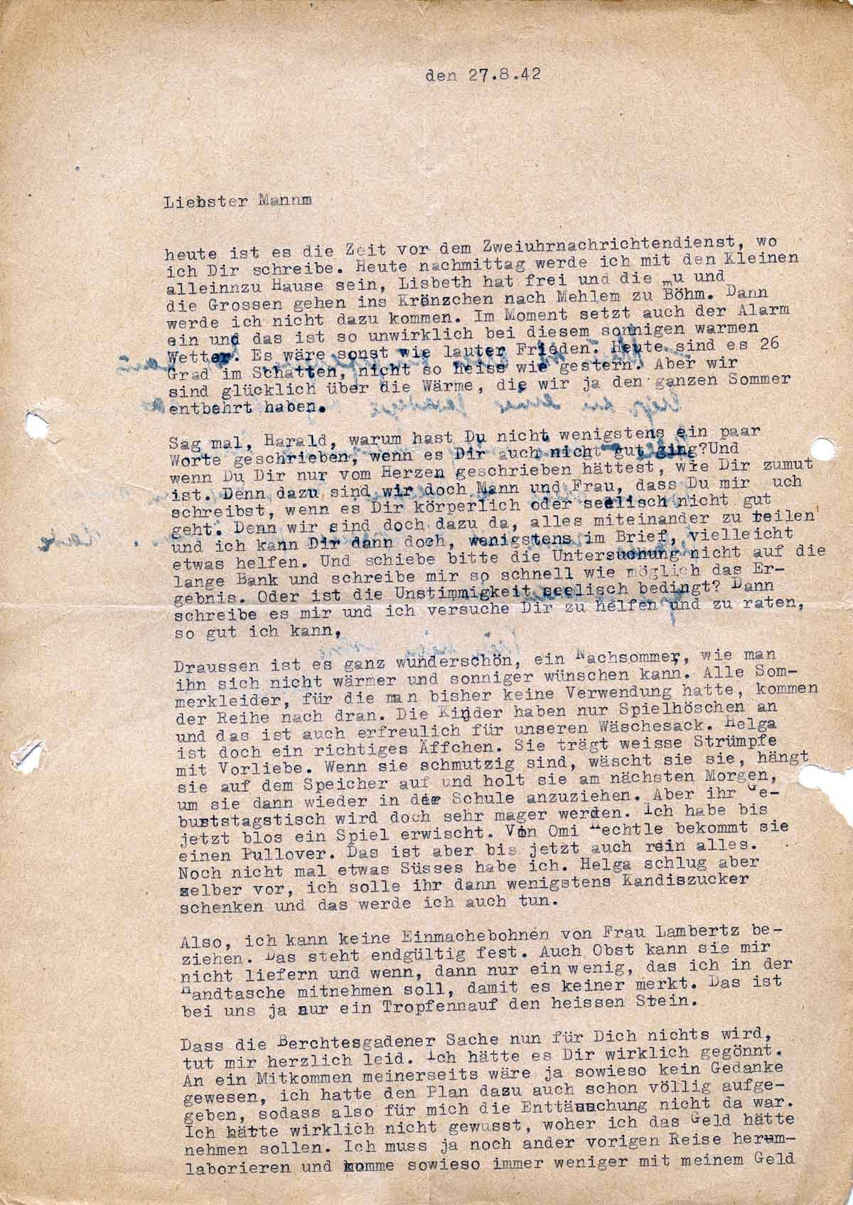 Charlotte Endemann an ihren Mann Harald, 27. August 1942