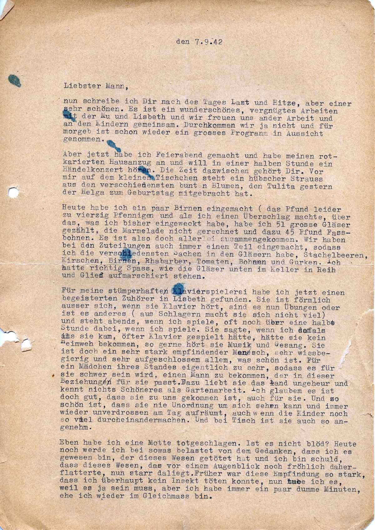 Charlotte Endemann an ihren Mann Harald, 7. September 1942