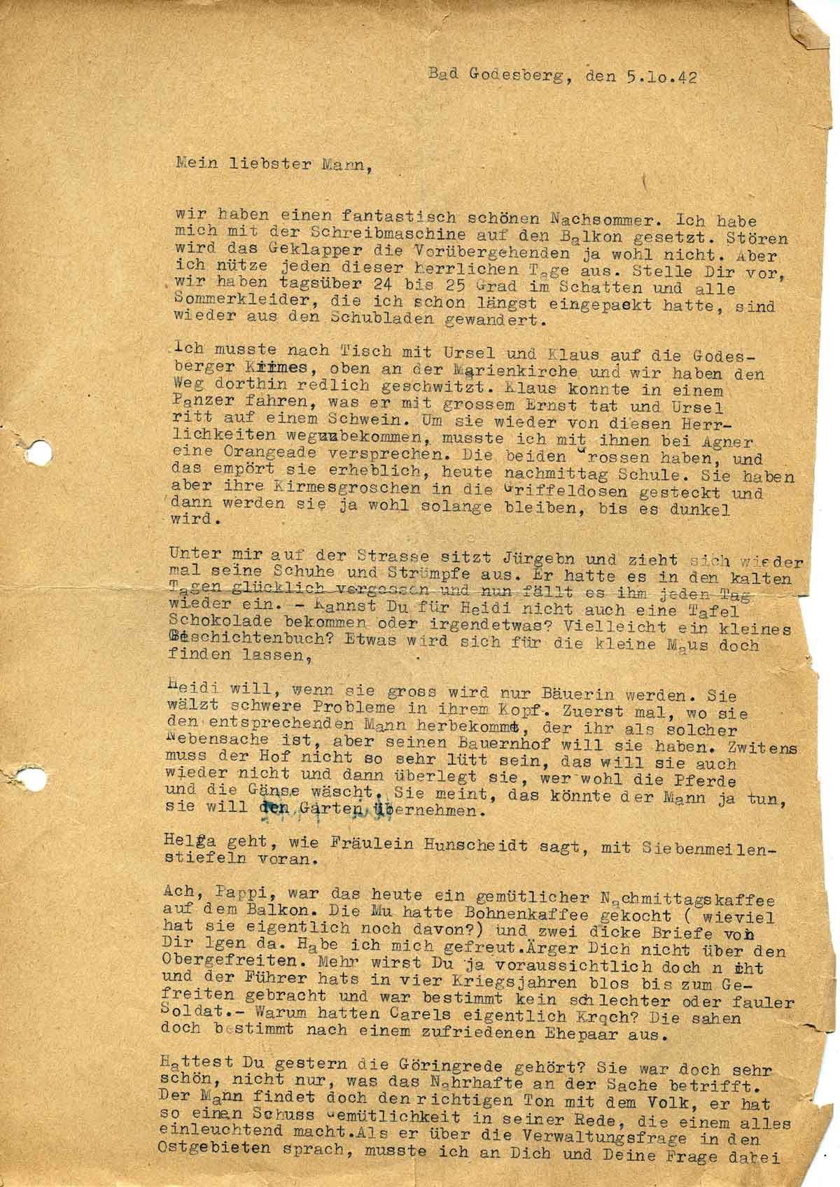 Charlotte Endemann an ihren Mann Harald, 5. Oktober 1942
