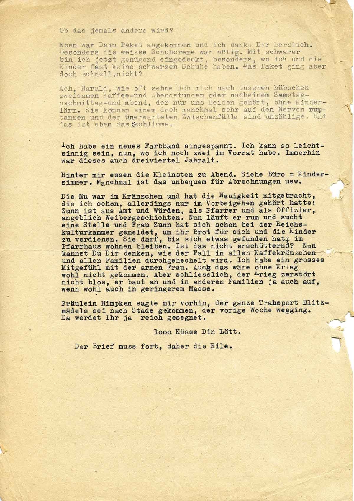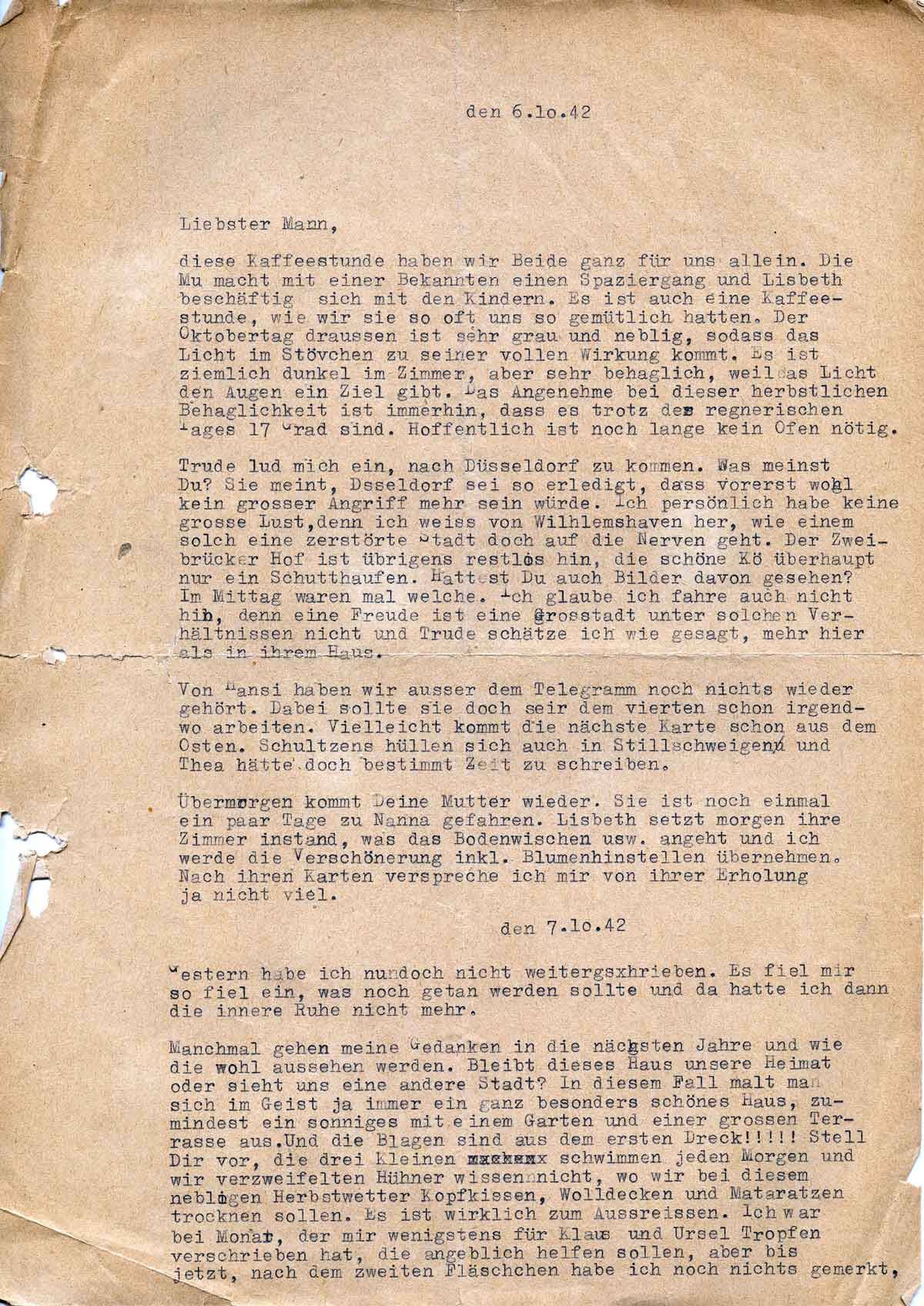 Charlotte Endemann an ihren Mann Harald, 6. Oktober 1942