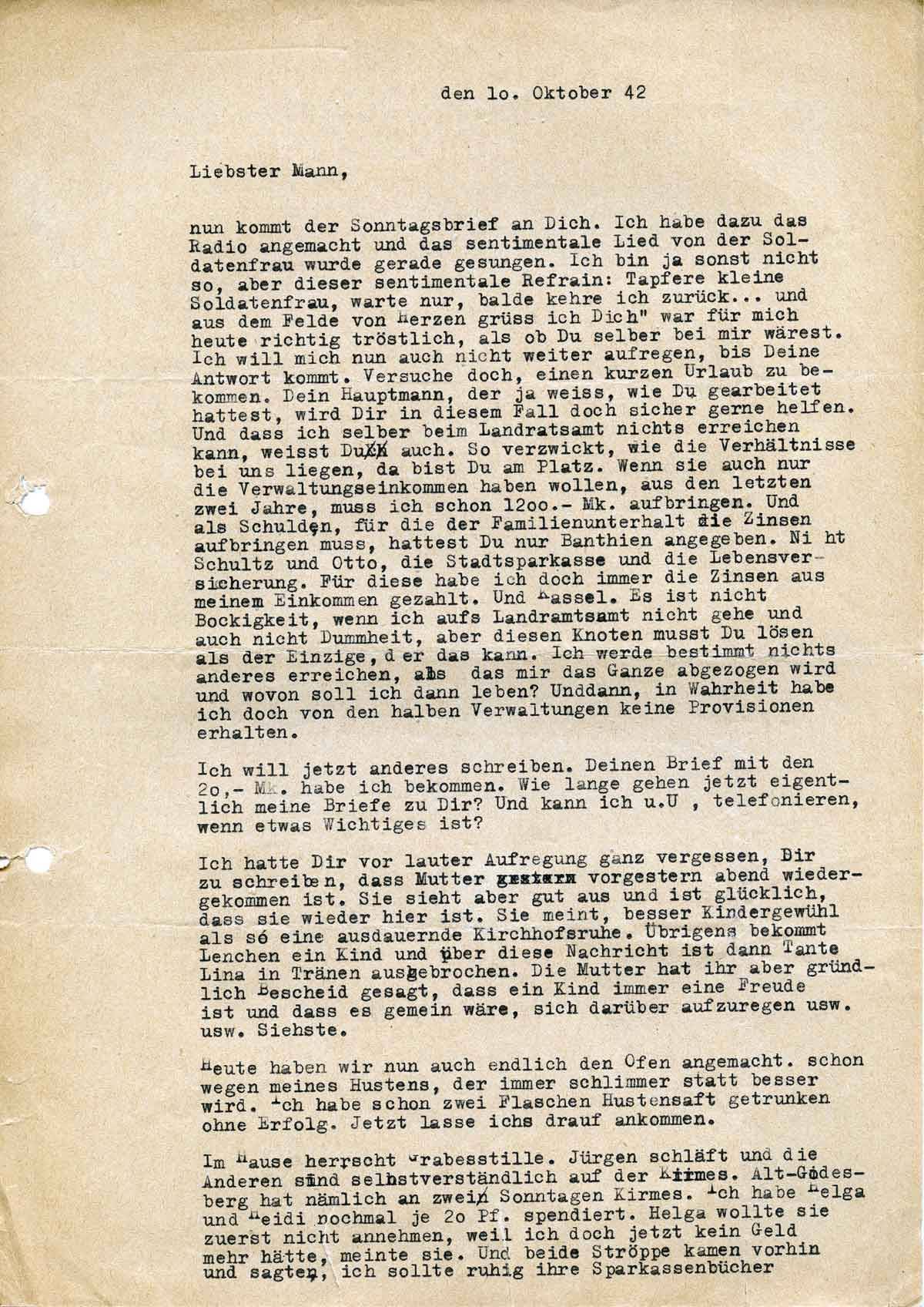 Charlotte Endemann an ihren Mann Harald, 10.Oktober 1942