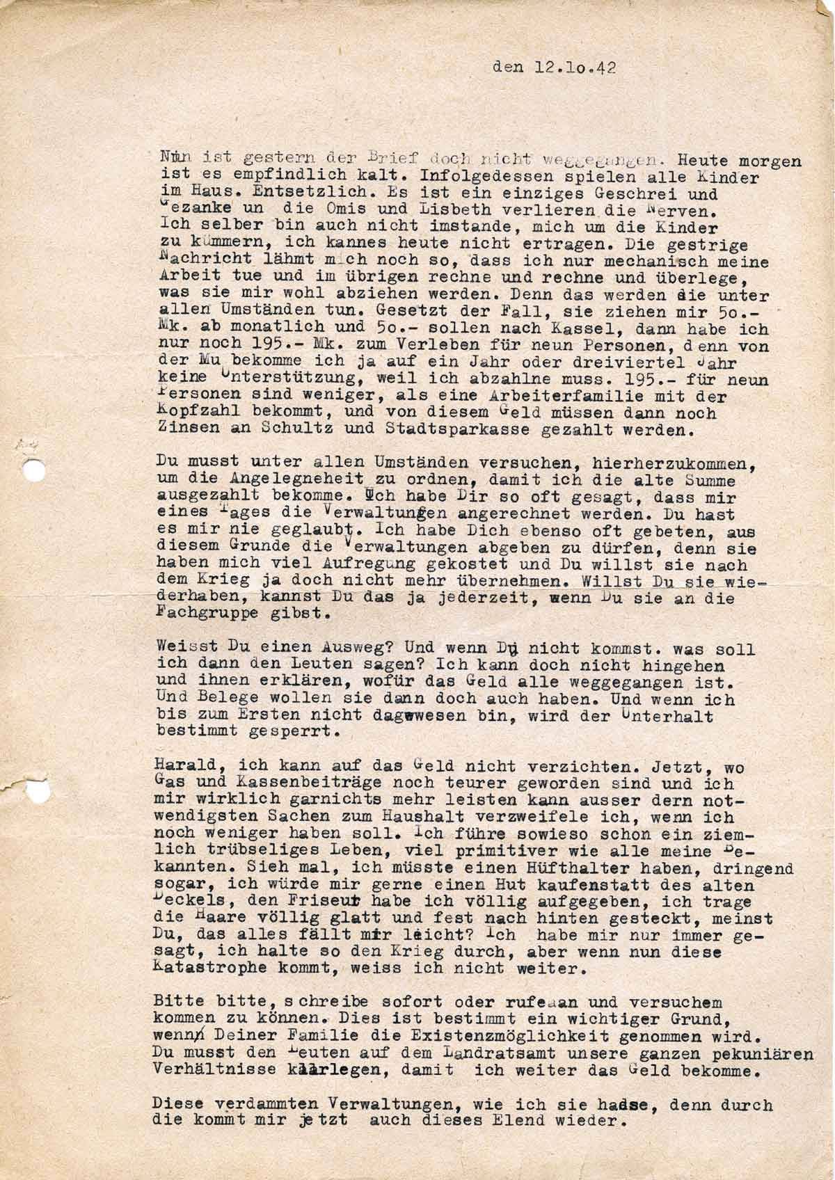Charlotte Endemann an ihren Mann Harald, 12. Oktober 1942