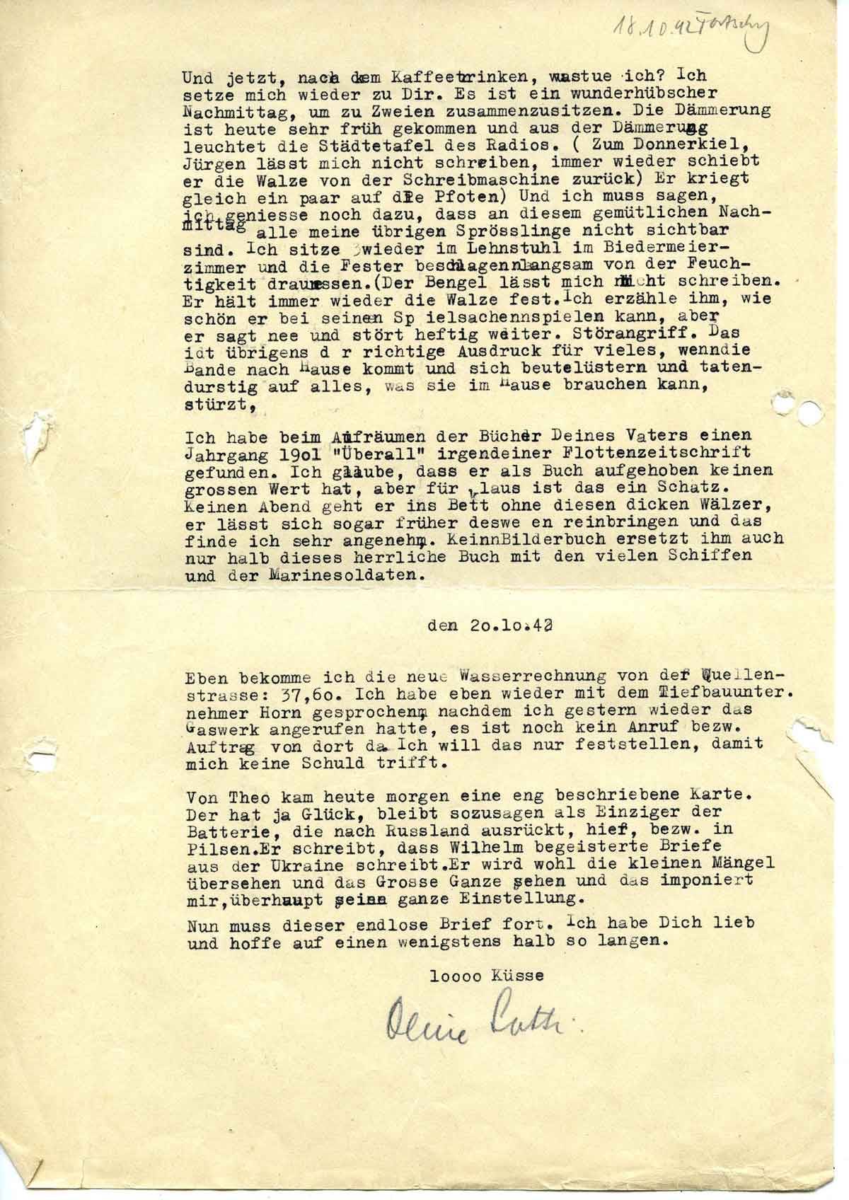Charlotte Endemann an ihren Mann Harald, 18. Oktober 1942