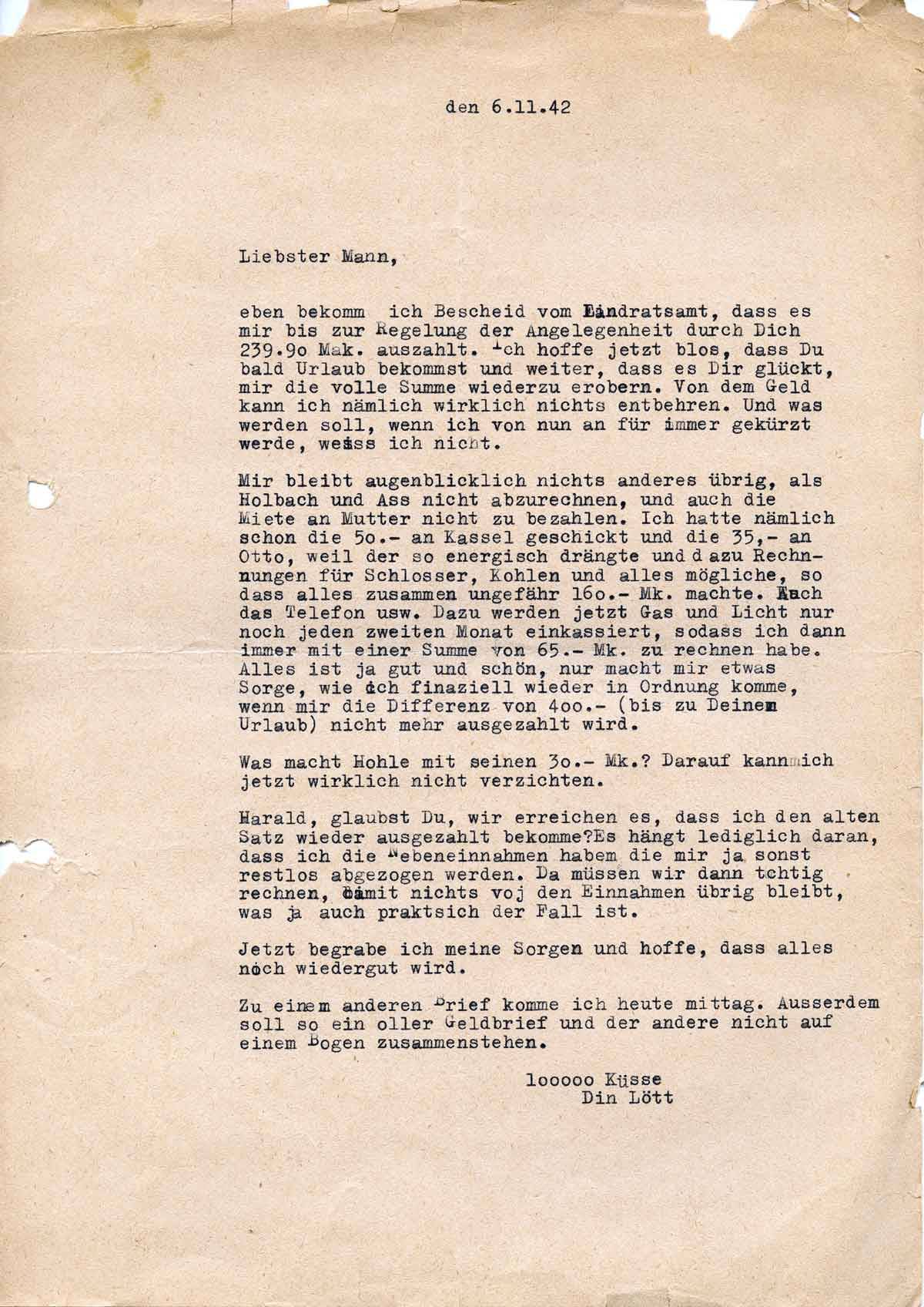 Charlotte Endemann an ihren Mann Harald, 6. November 1942