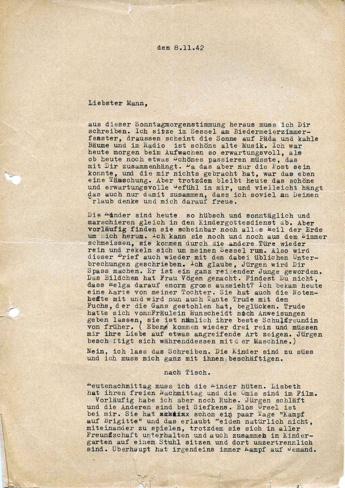 Charlotte Endemann an ihren Mann Harald, 8. November 1942