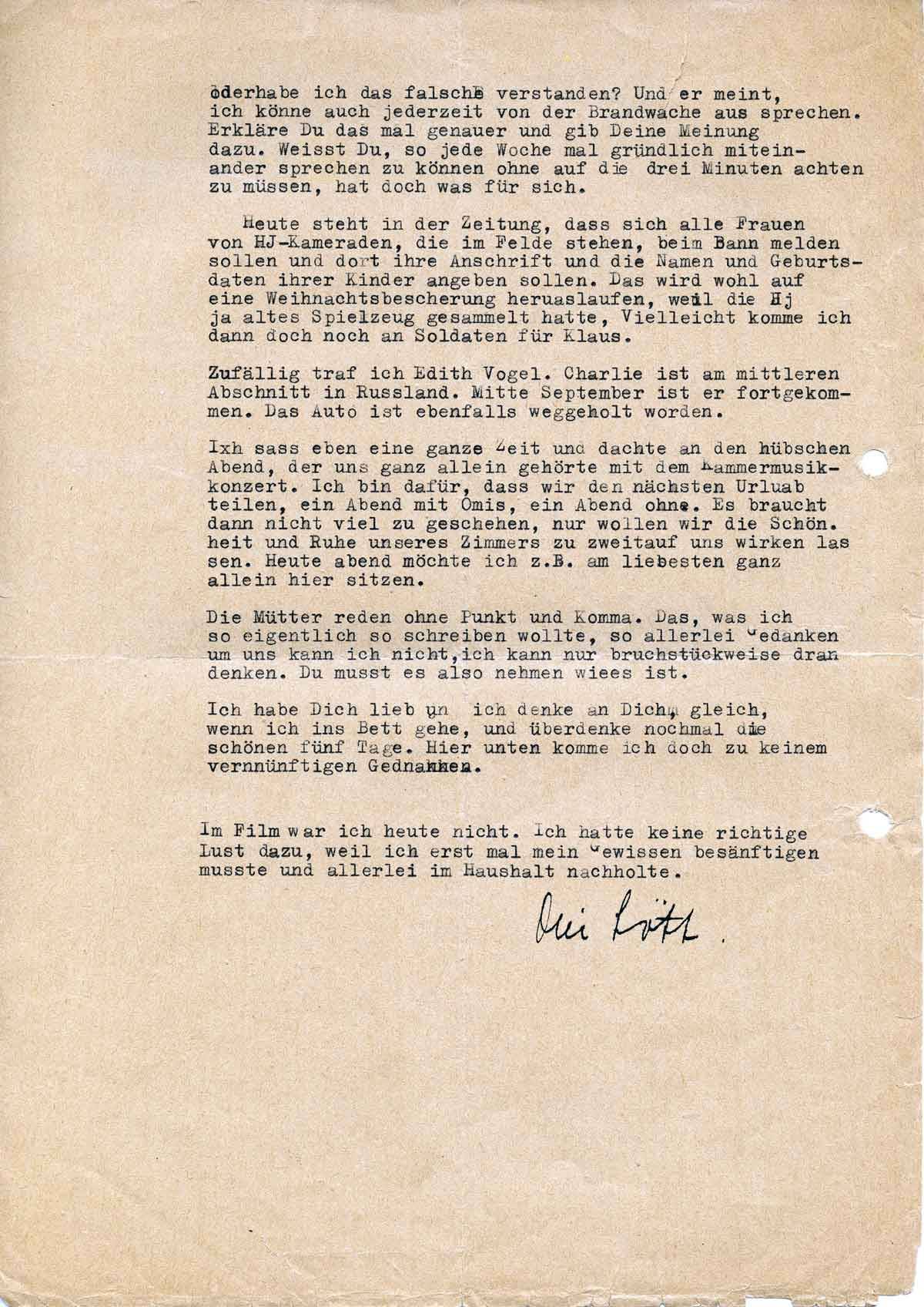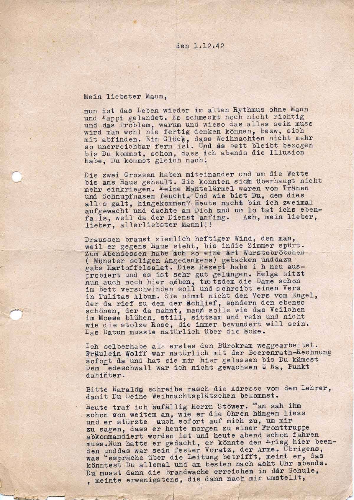 Charlotte Endemann an ihren Mann Harald, 1. Dezember 1942
