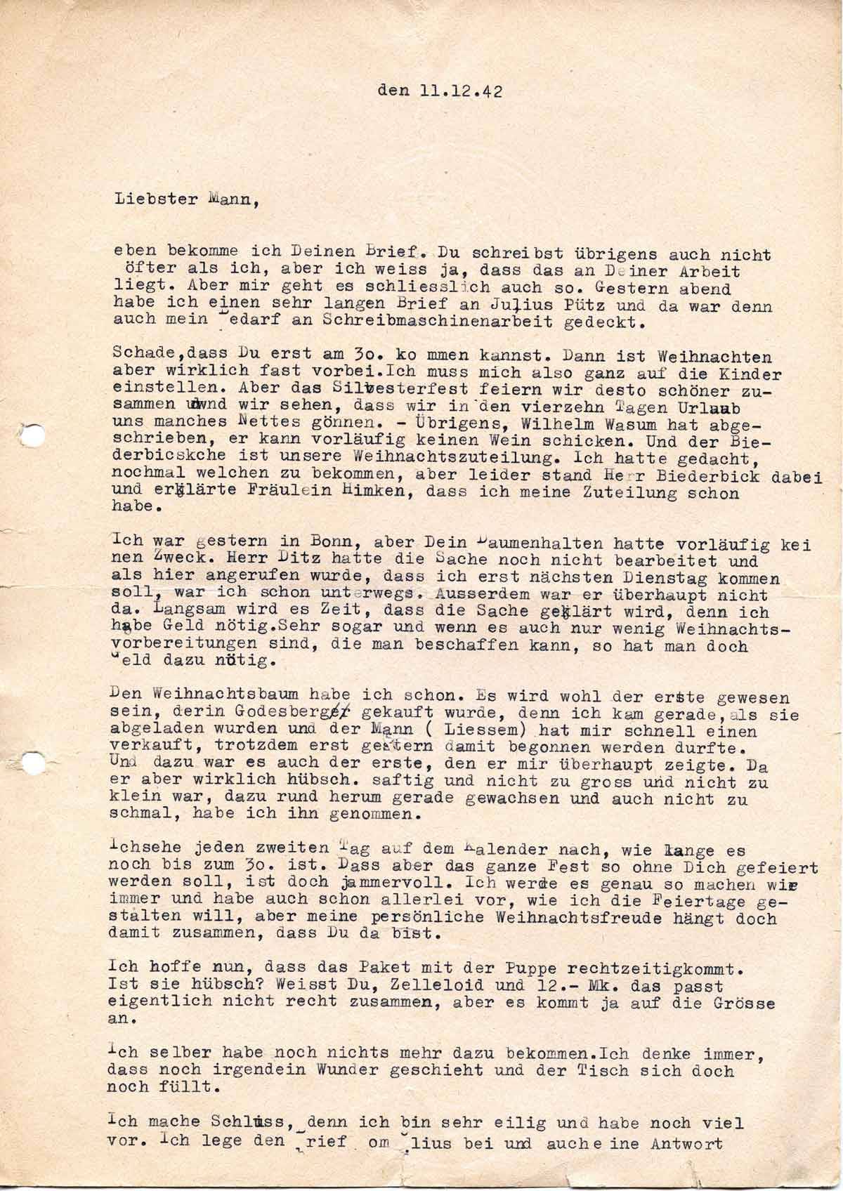 Charlotte Endemann an ihren Mann Harald, 11. Dezember 1942