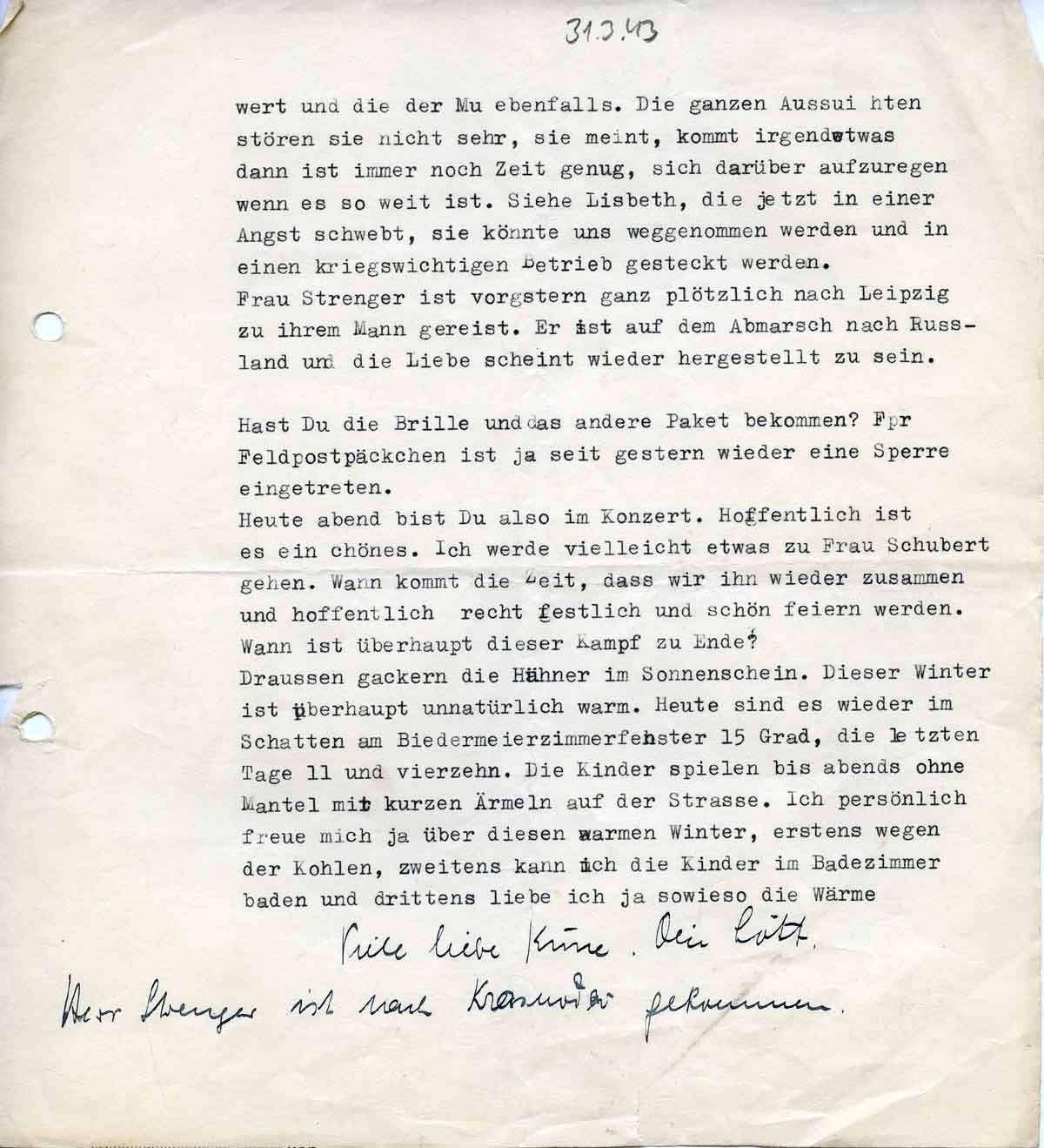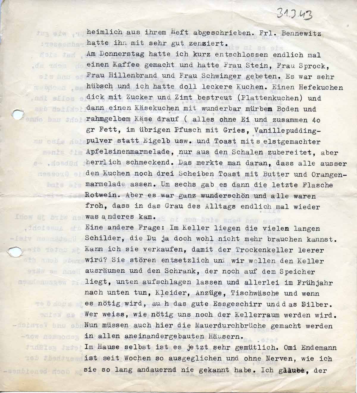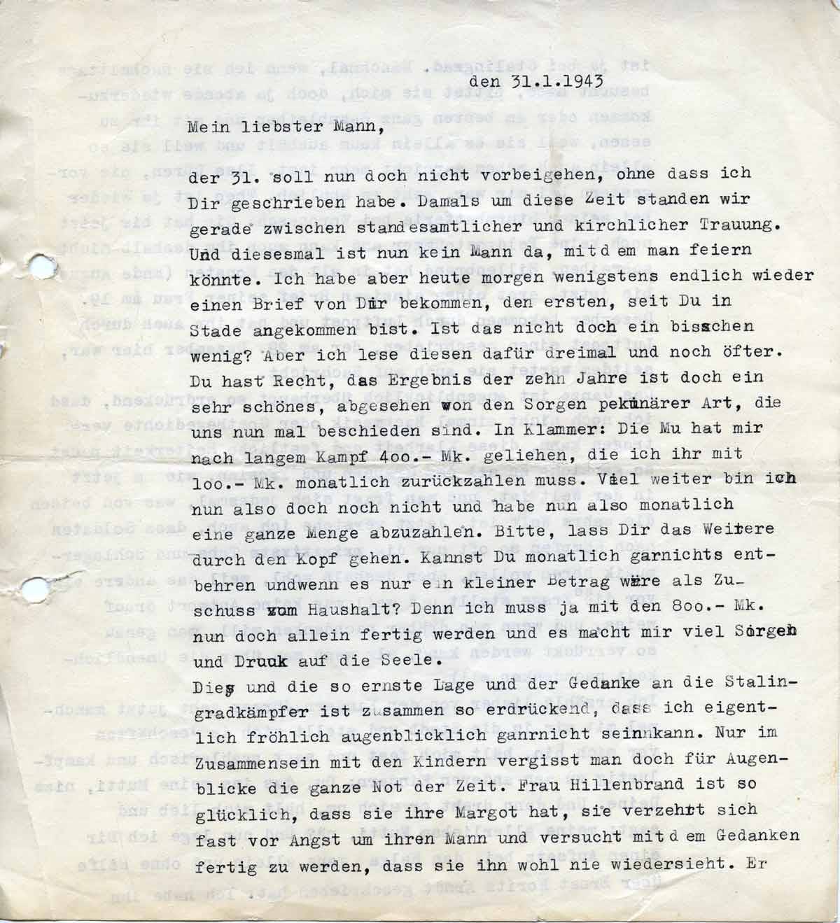 Charlotte Endemann an ihren Mann Harald, 31. Januar 1943