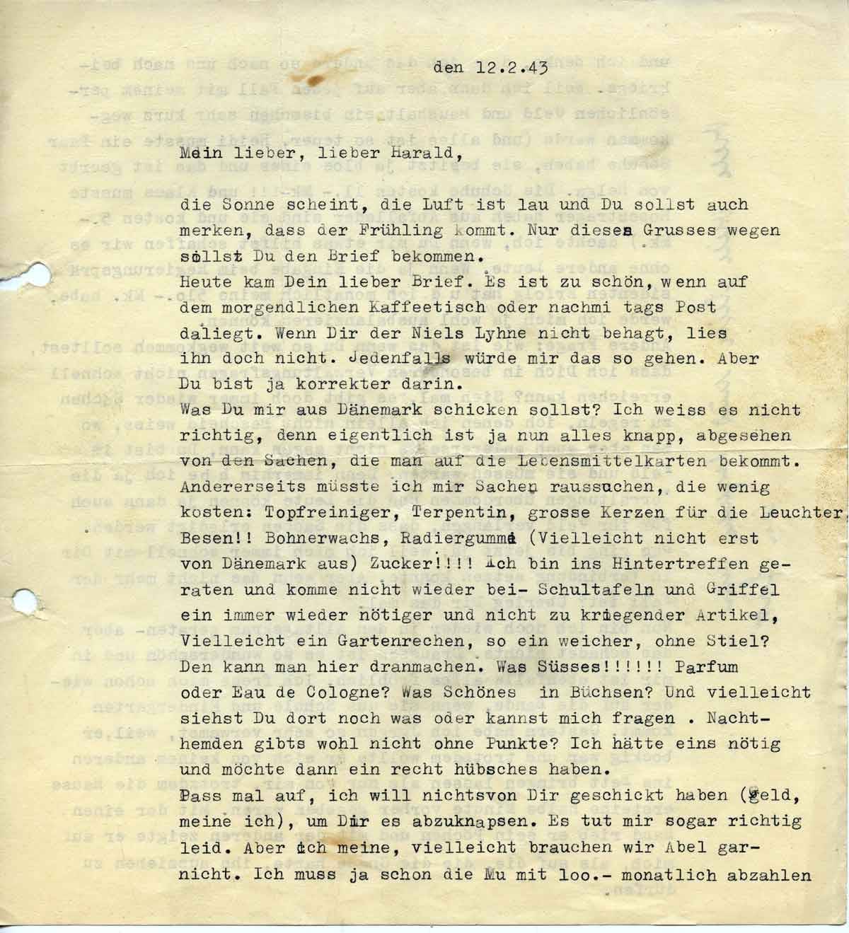 Charlotte Endemann an ihren Mann Harald, 12. Februar 1943