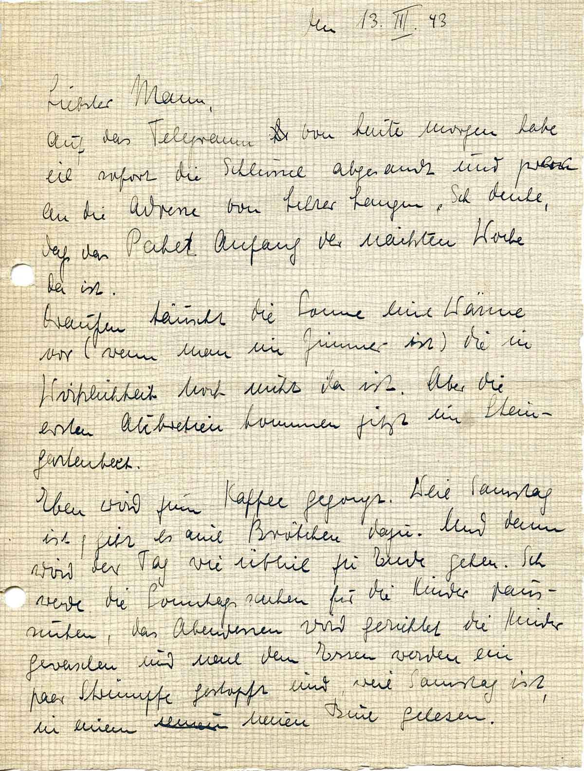 Charlotte Endemann an ihren Mann Harald, 13. März 1943