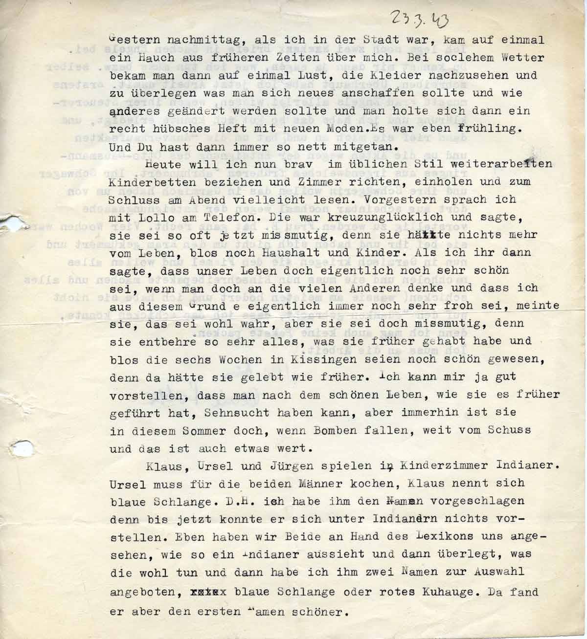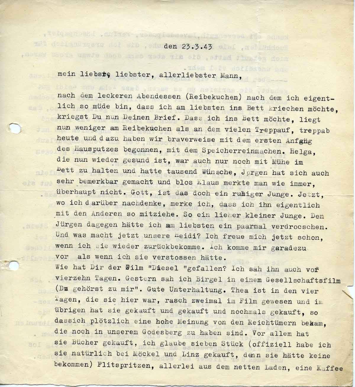 Charlotte Endemann an ihren Mann Harald, 23. März 1943
