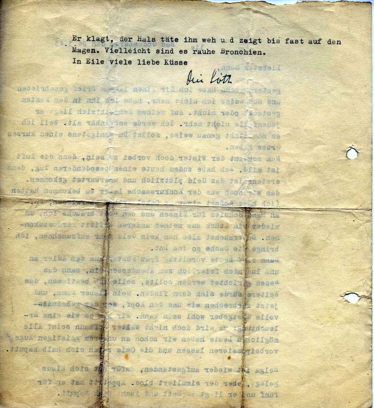 Gestern Abend habe ich Dir einen langen Brief geschrieben und nun weiss ich nicht mehr, habe ich ihn in den Kasten gesteckt oder nicht. Auf meinem Schreibtisch liegt er jedenfalls nicht mehr. Ich werde scheinbar alt. Weil ich es nun nicht genau weiss, sollst Du wenigstens einen kurzen Gruss haben.