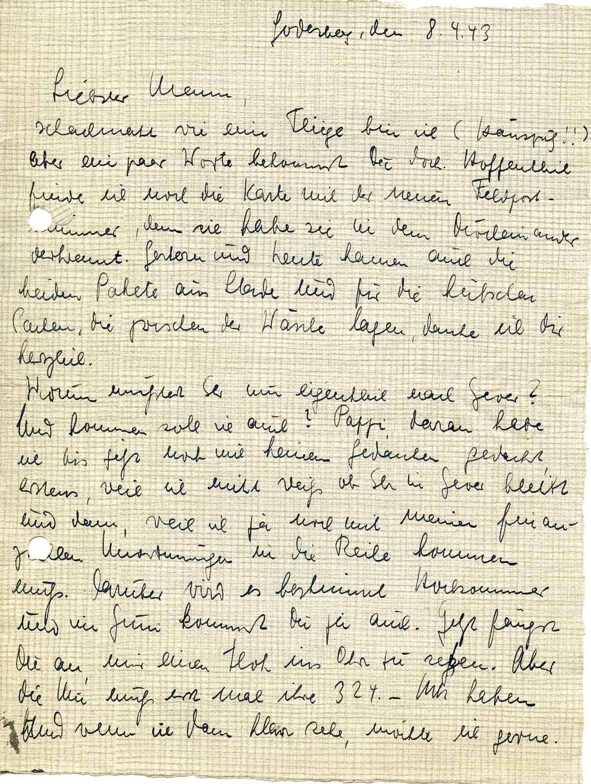 Charlotte Endemann an ihren Mann Harald, 8. April 1943