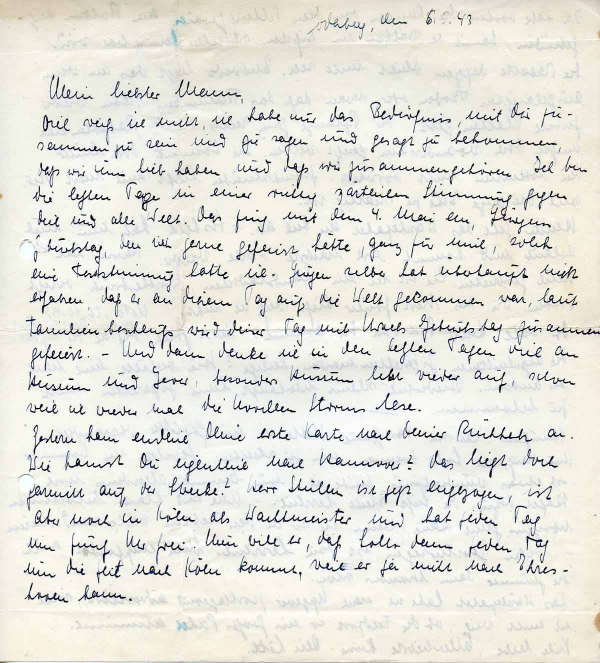 Charlotte Endemann an ihren Mann Harald, 6. Mai 1943