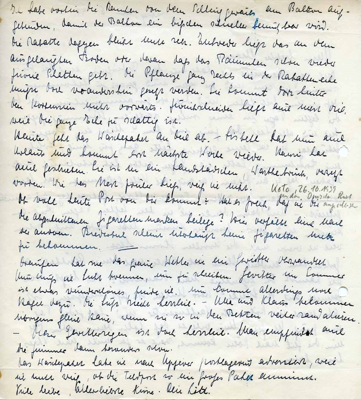 Das Wäschepaket habe ich nach Upjever postlagernd adressiert, weil ich nicht weiß, ob die Feldpost so ein großes Paket annimmt,