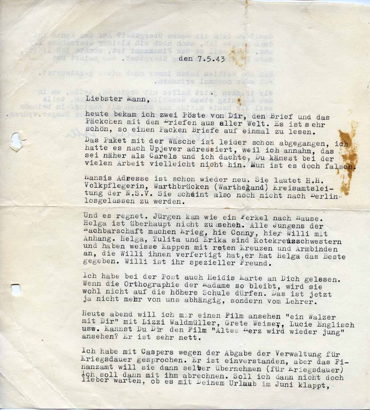 Charlotte Endemann an ihren Mann Harald, 7. Mai 1943