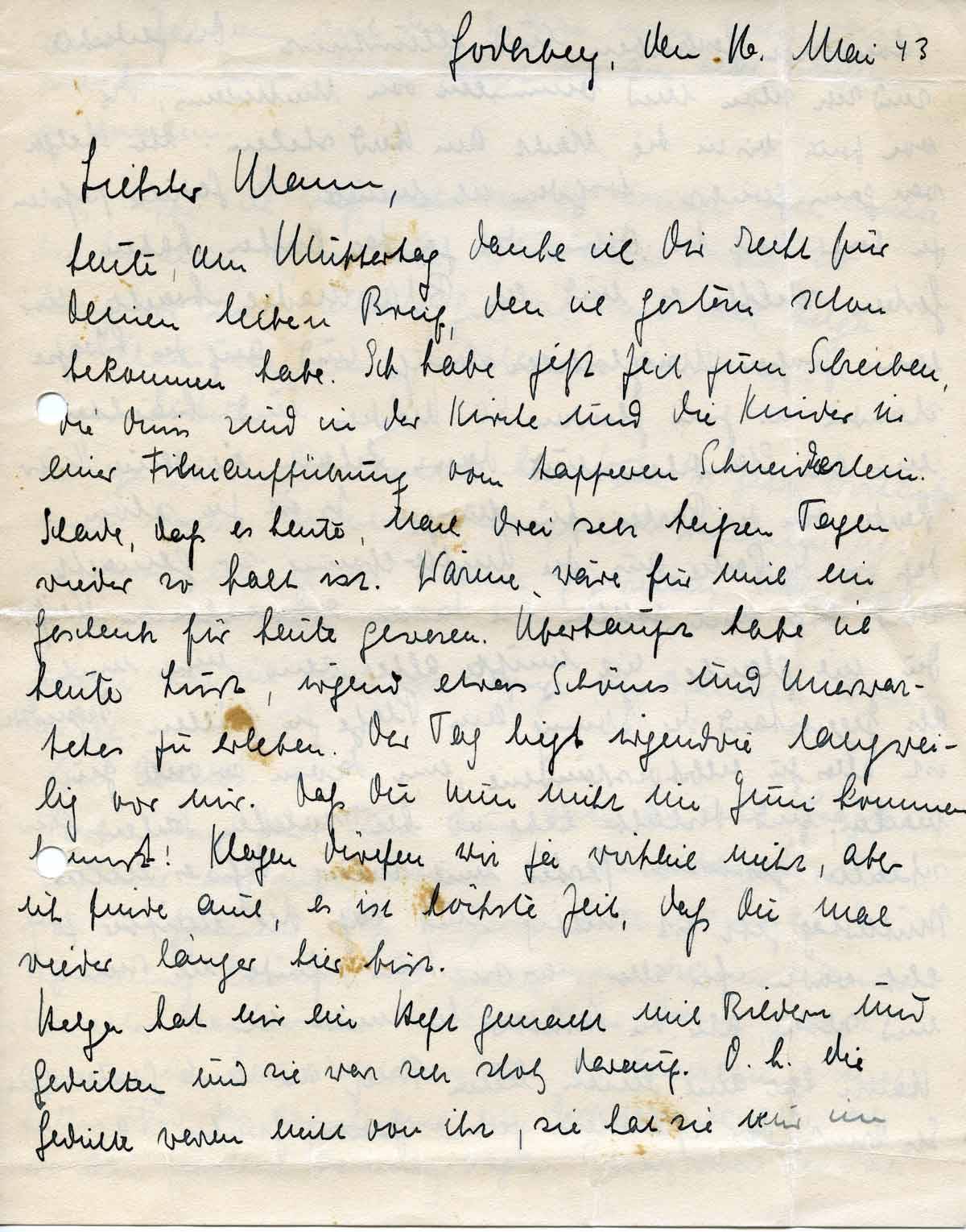 Charlotte Endemann an ihren Mann Harald, 16. Mai 1943