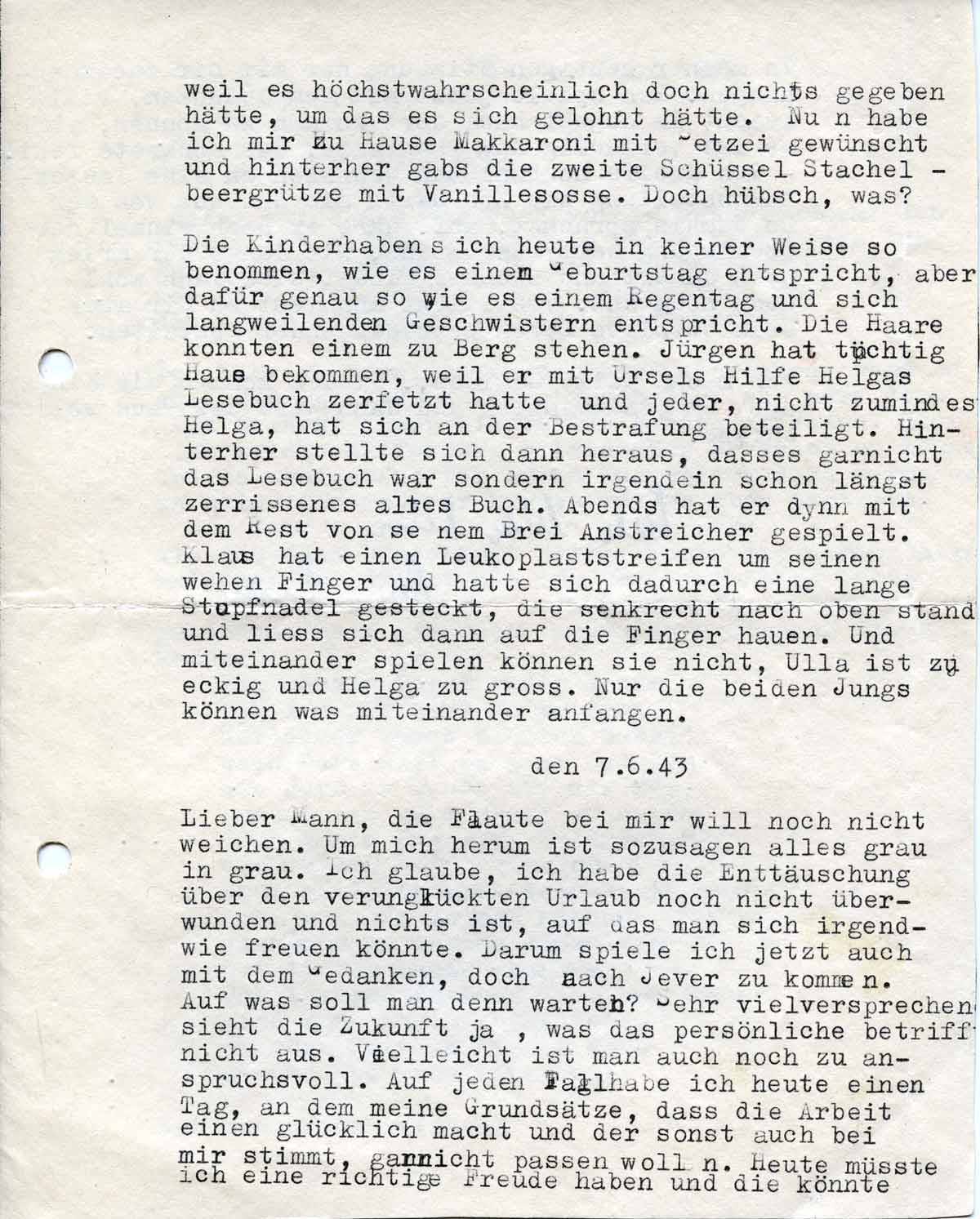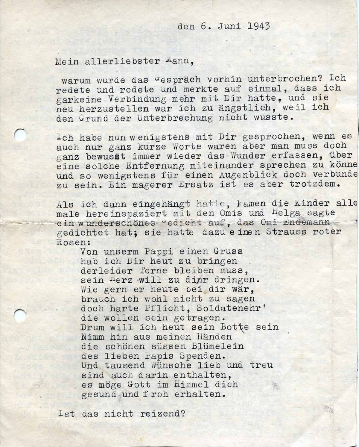 Charlotte Endemann an ihren Mann Harald, 6. Juni 1943