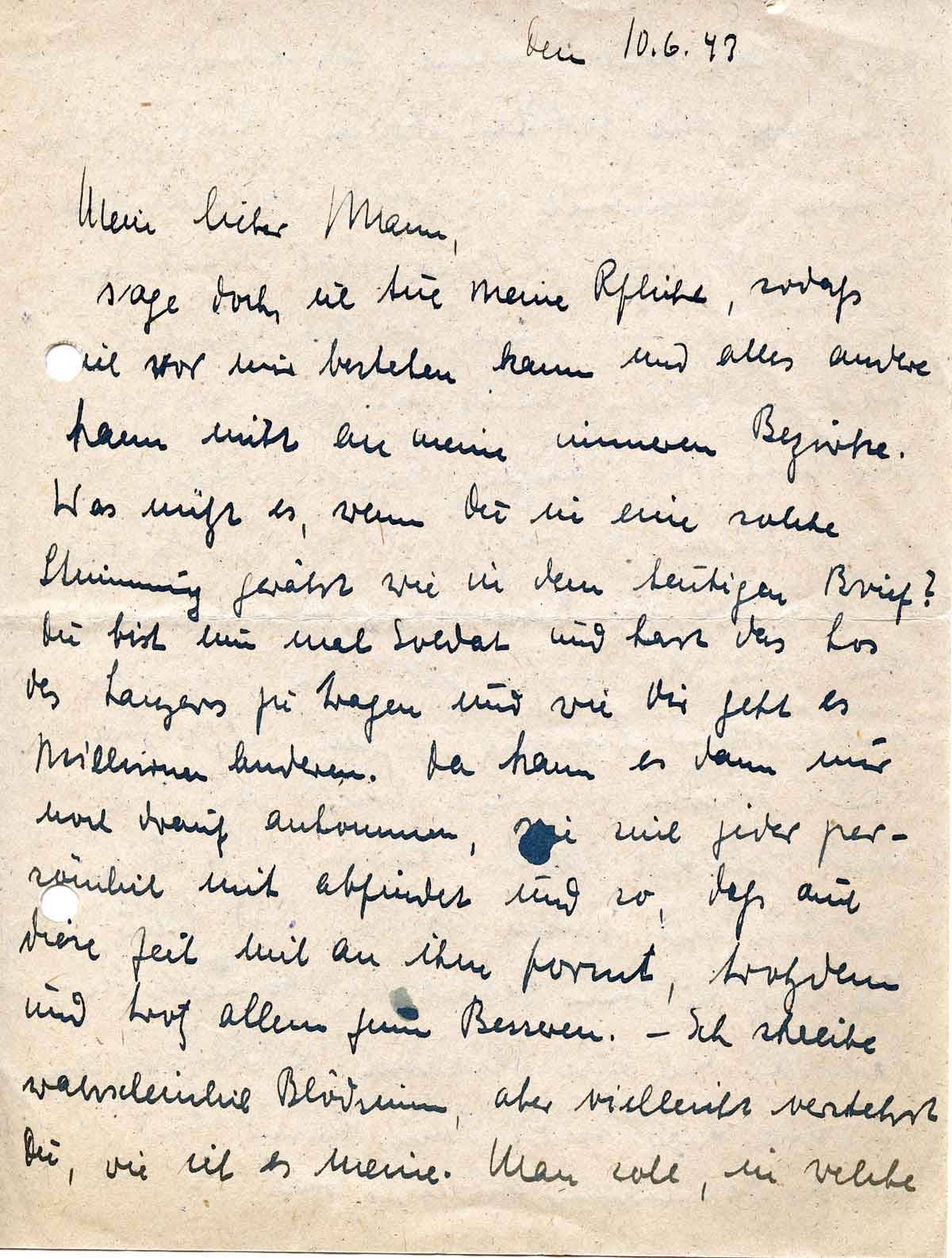 Charlotte Endemann an ihren Mann Harald, 10. Juni 1943