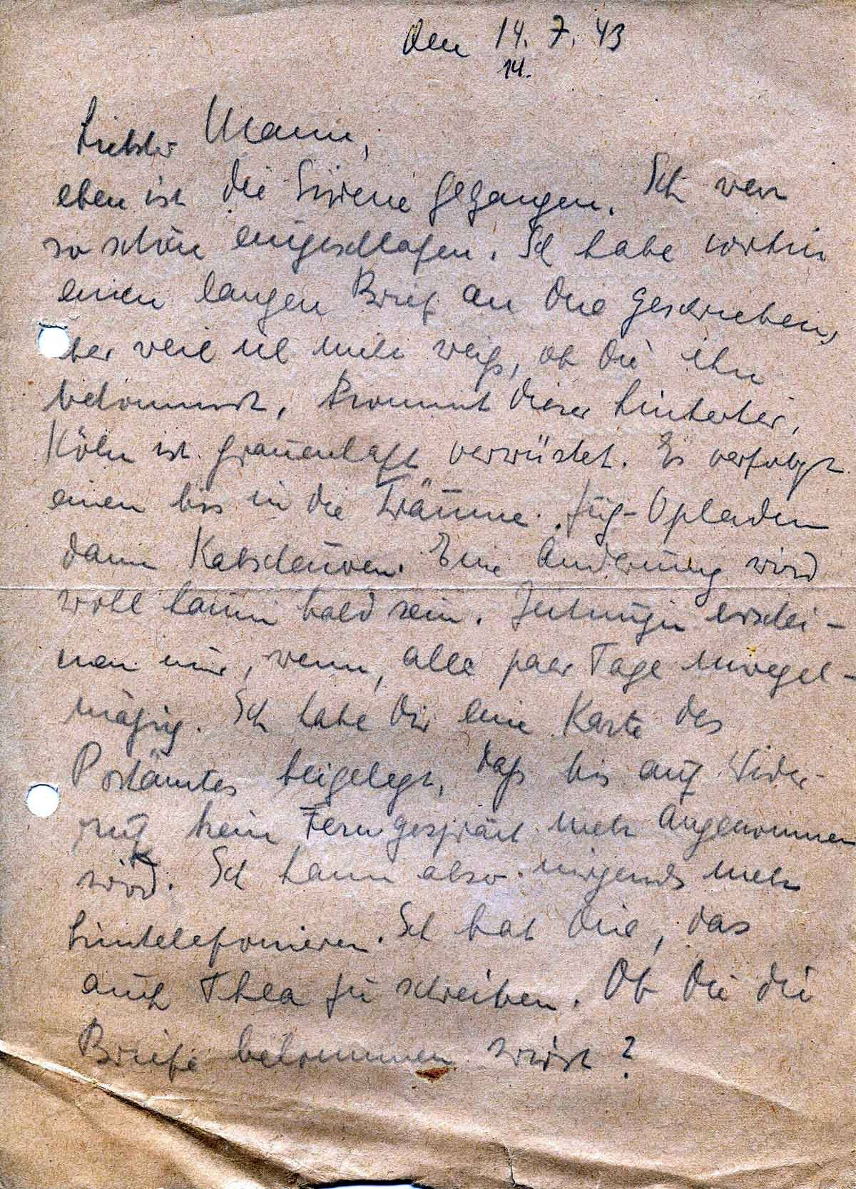 Charlotte Endemann an ihren Mann Harald, 14. Juli 1943