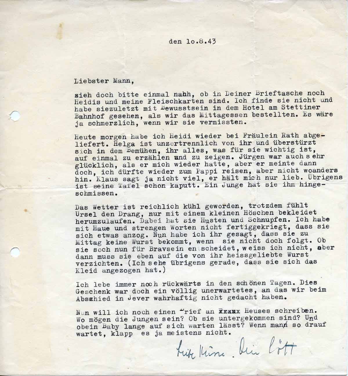 Charlotte Endemann an ihren Mann Harald, 10. August 1943