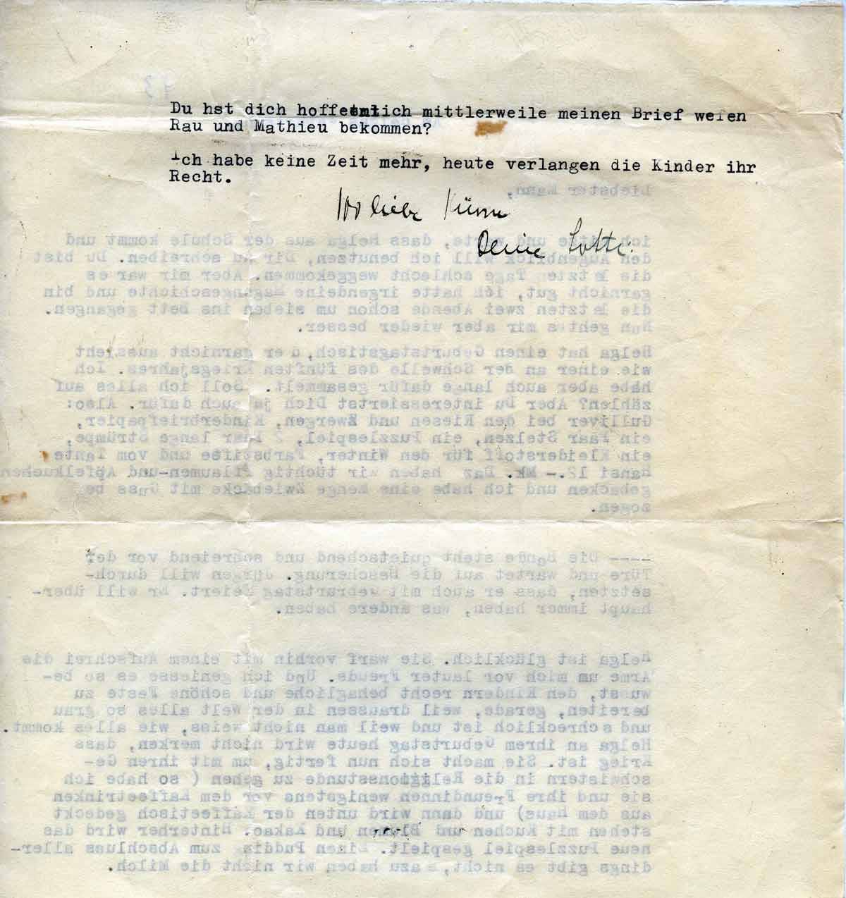 Ich sitze und warte, dass Helga aus der Schule kommt, und den Augenblick will ich nutzen. Du bist die letzten Tage schlecht weggekommen. Aber mir war es gar nicht gut, ich hatte irgendeine Magengeschichte und bin die letzten Abende schon um sieben ins Bett gegangen. Nun geht es mir aber wieder besser.