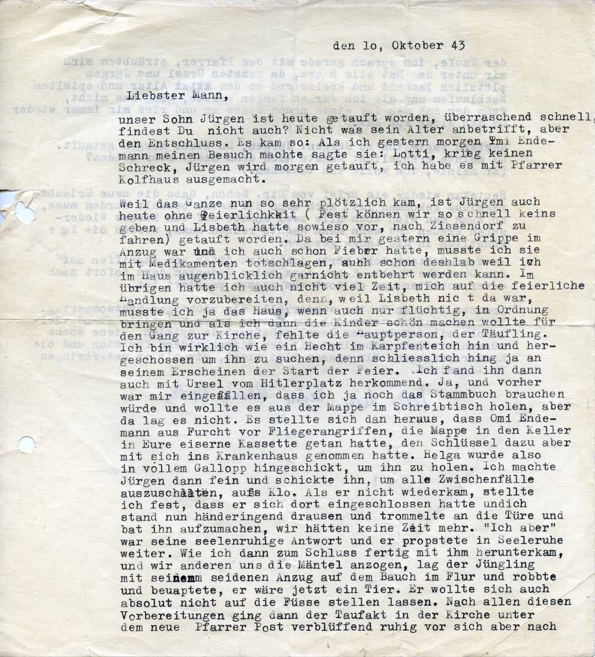 Charlotte Endemann an ihren Mann Harald, 10. Oktober 1943
