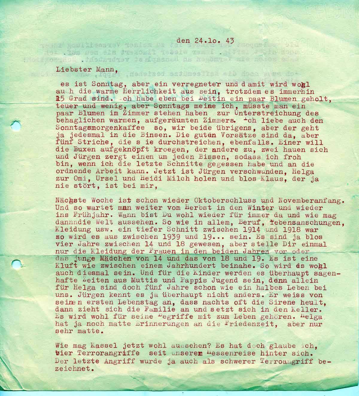 Charlotte Endemann an ihren Mann Harald, 24. Oktober 1943