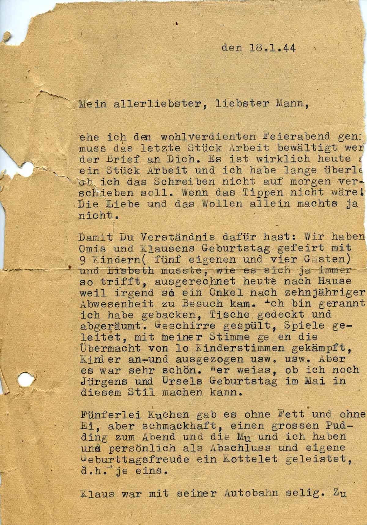Charlotte Endemann an ihren Mann Harald, 18. Januar 1944