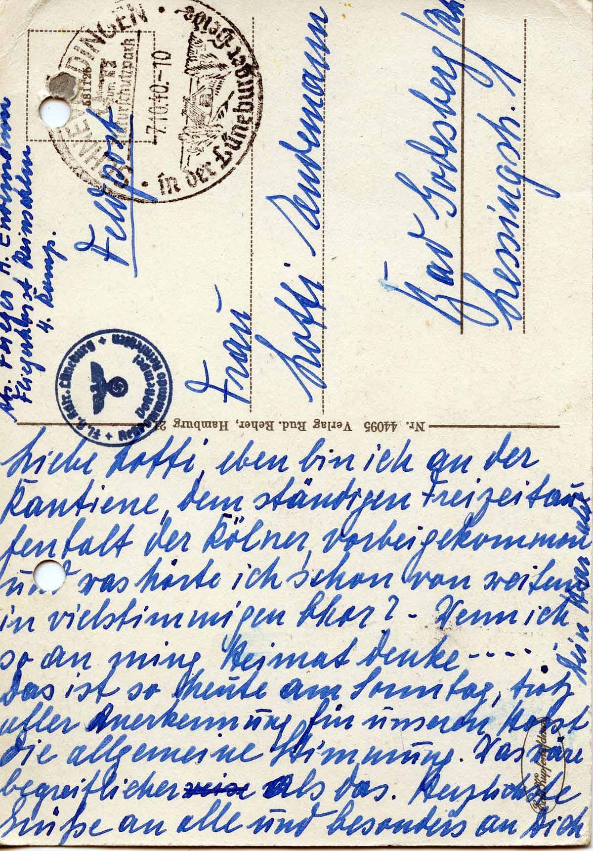 Harald Endemann an seine Frau Charlotte, 7. Oktober 1940