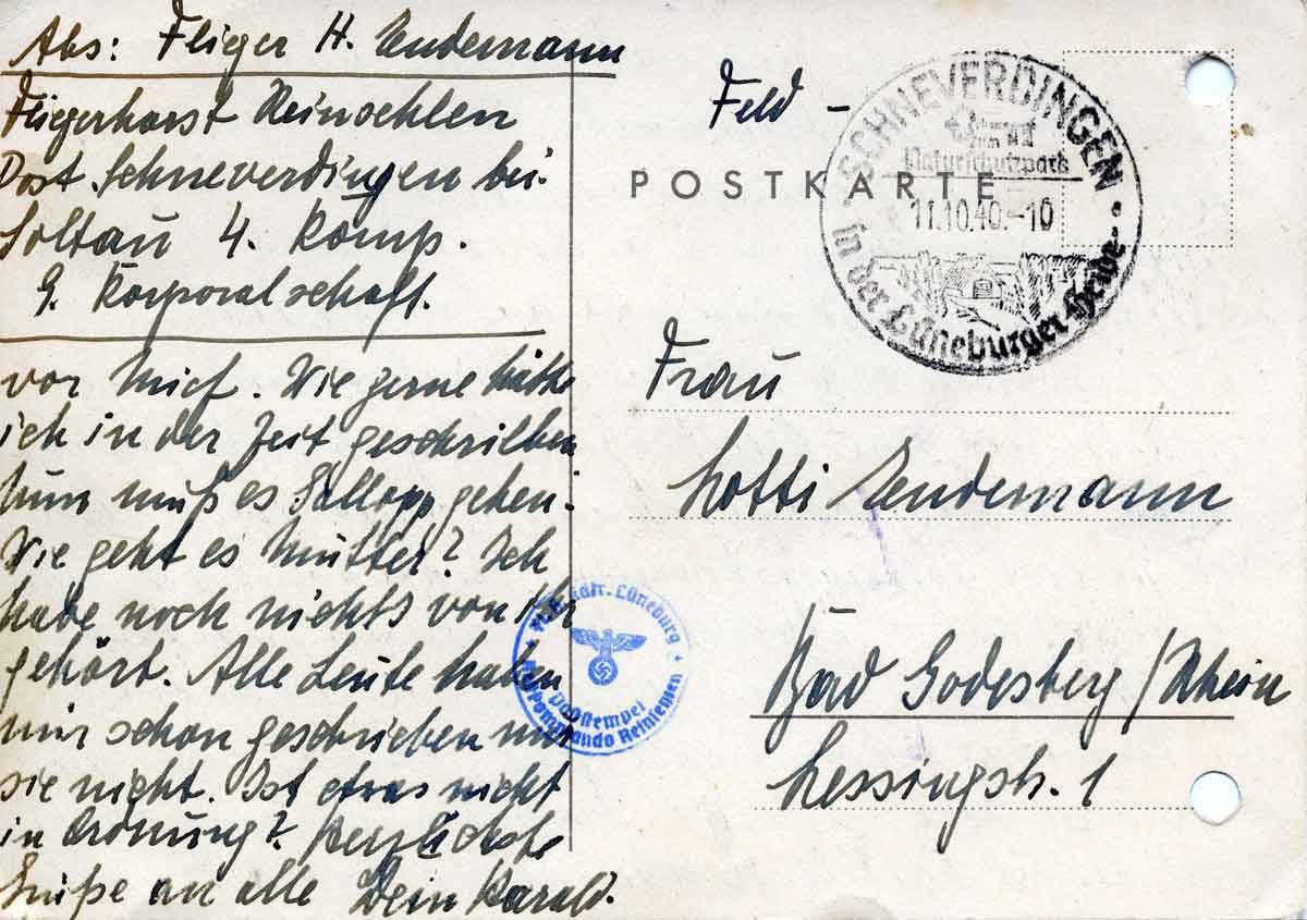 [Postkarte ohne Bild, Stempel 11.11.40]