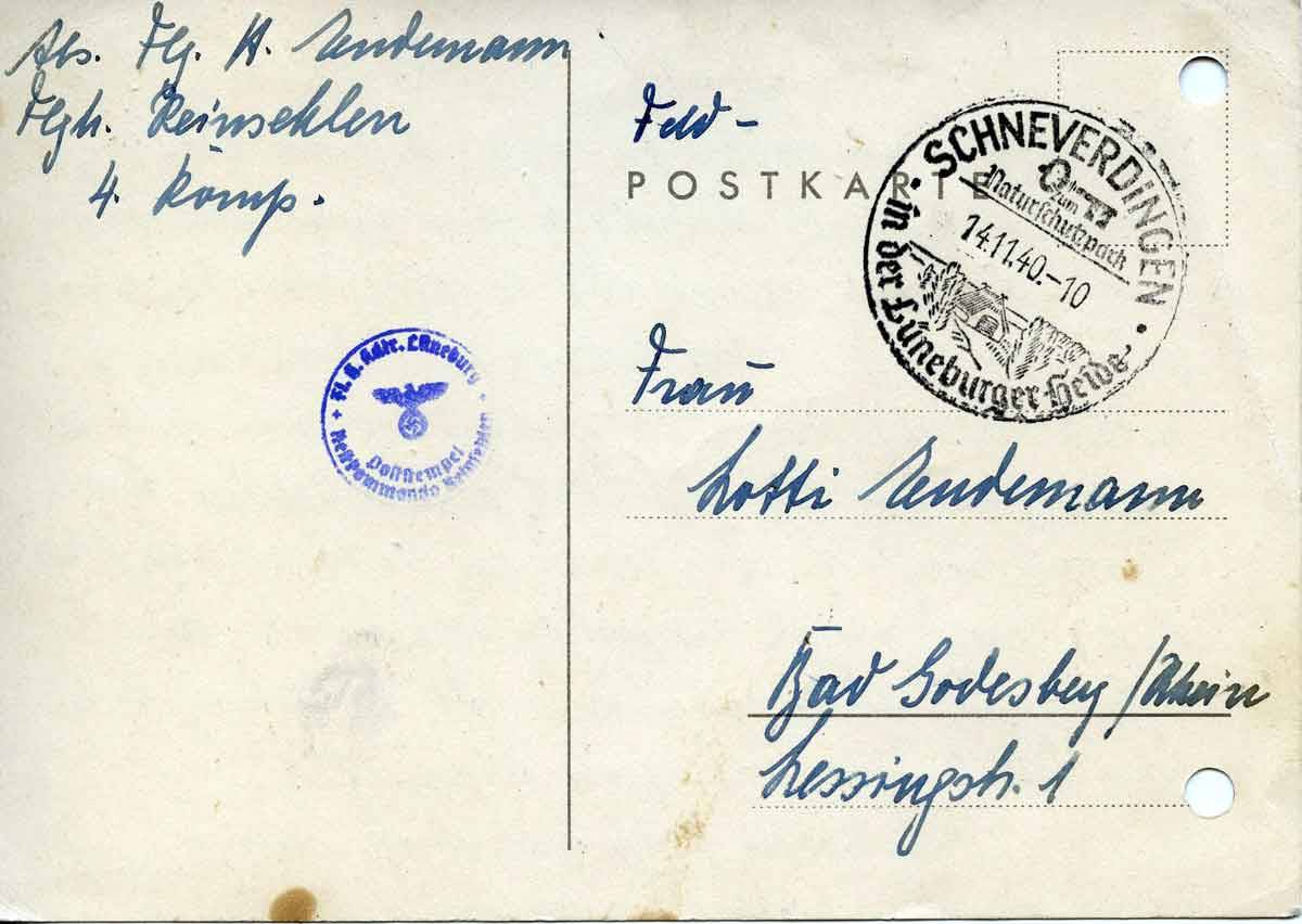 [Postkarte Stempel Schneverdingen 14.11.40]