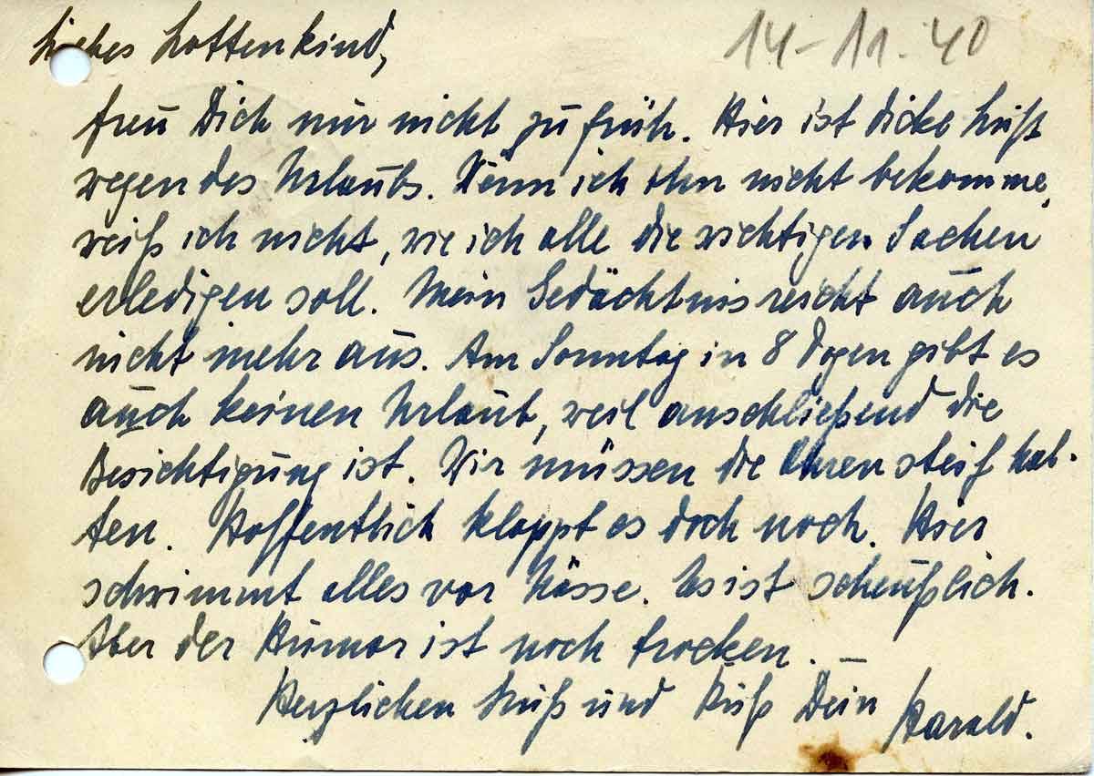 Harald Endemann an seine Frau Charlotte, 14. November 1940