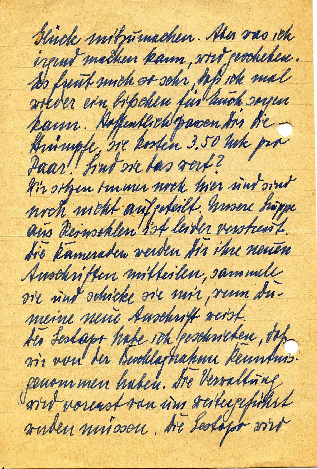 Wir sitzen immer noch hier und sind noch nicht aufgeteilt. Unsere Gruppe aus Reinsehlen ist leider verstreut. Die Kameraden werden Dir ihre neuen Anschriften mitteilen, sammele sie und schicke sie mir, wenn Du meine neue Anschrift weist (!).