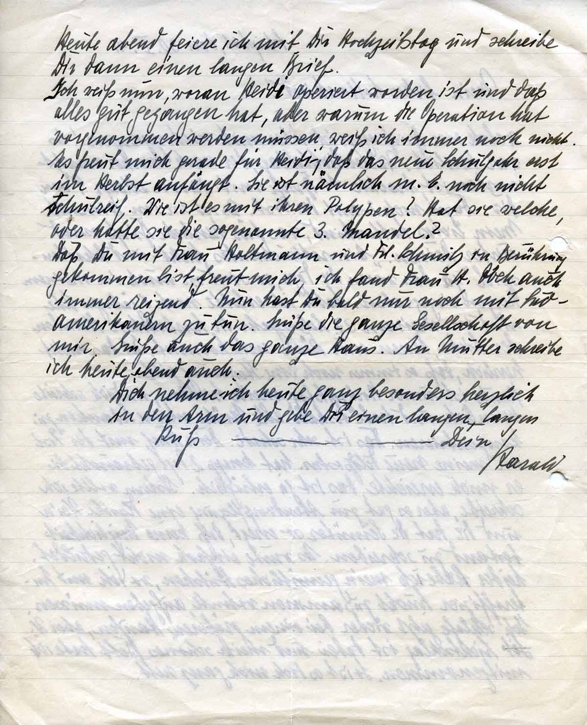 Dass du mit Frau Holtmann und Frl. Schmitz in Berührung gekommen bist, freut mich, ich fand Frau H. Doch auch immer reizend. Nun hast Du bald nur noch mit Südamerikanern zu tun. Grüße die ganze Gesellschaft von mir. Grüße auch das ganze Haus. An Mutter schreibe ich heute abend auch.