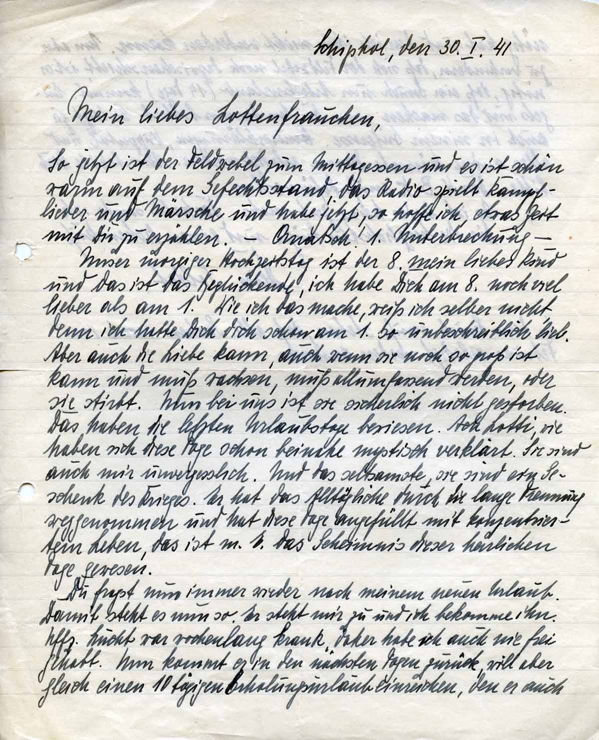 Harald Endemann an seine Frau Charlotte, 30. Januar 1941
