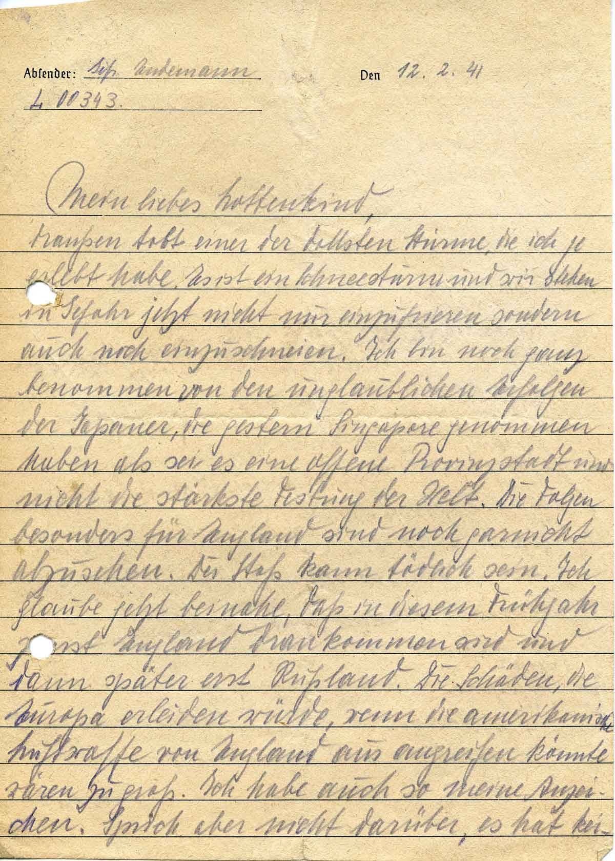 Harald Endemann an seine Frau Charlotte, 12. Februar 1942