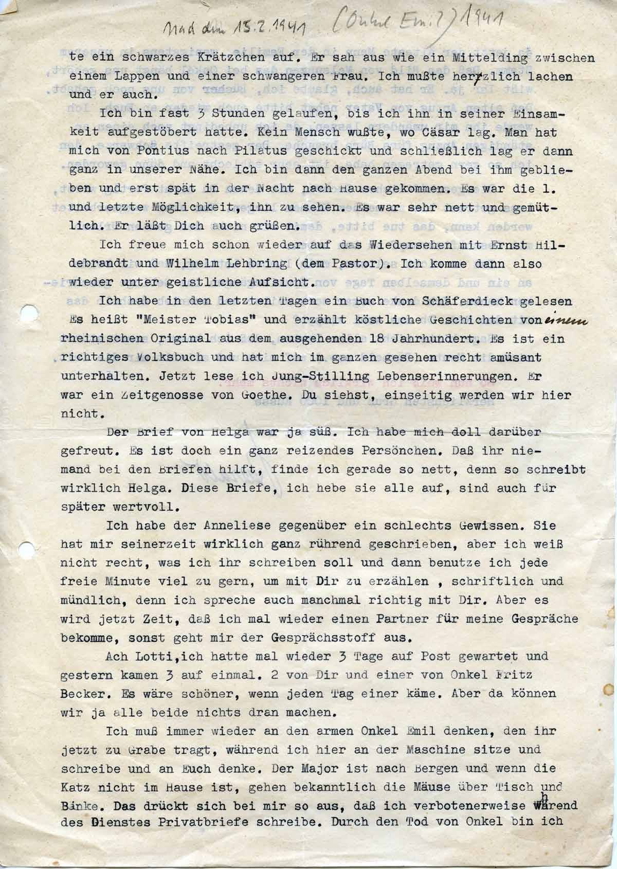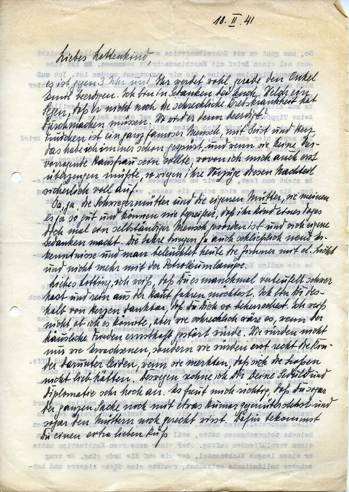 Harald Endemann an seine Frau Charlotte, 18. Februar 1941