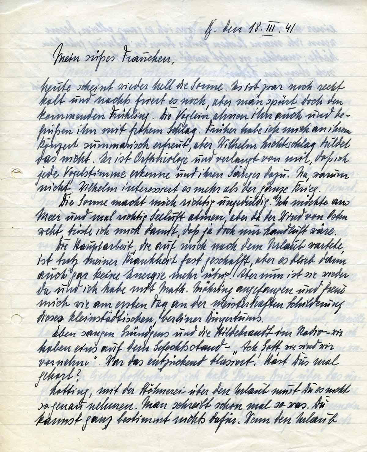 Harald Endemann an seine Frau Charlotte, 18. März 1941