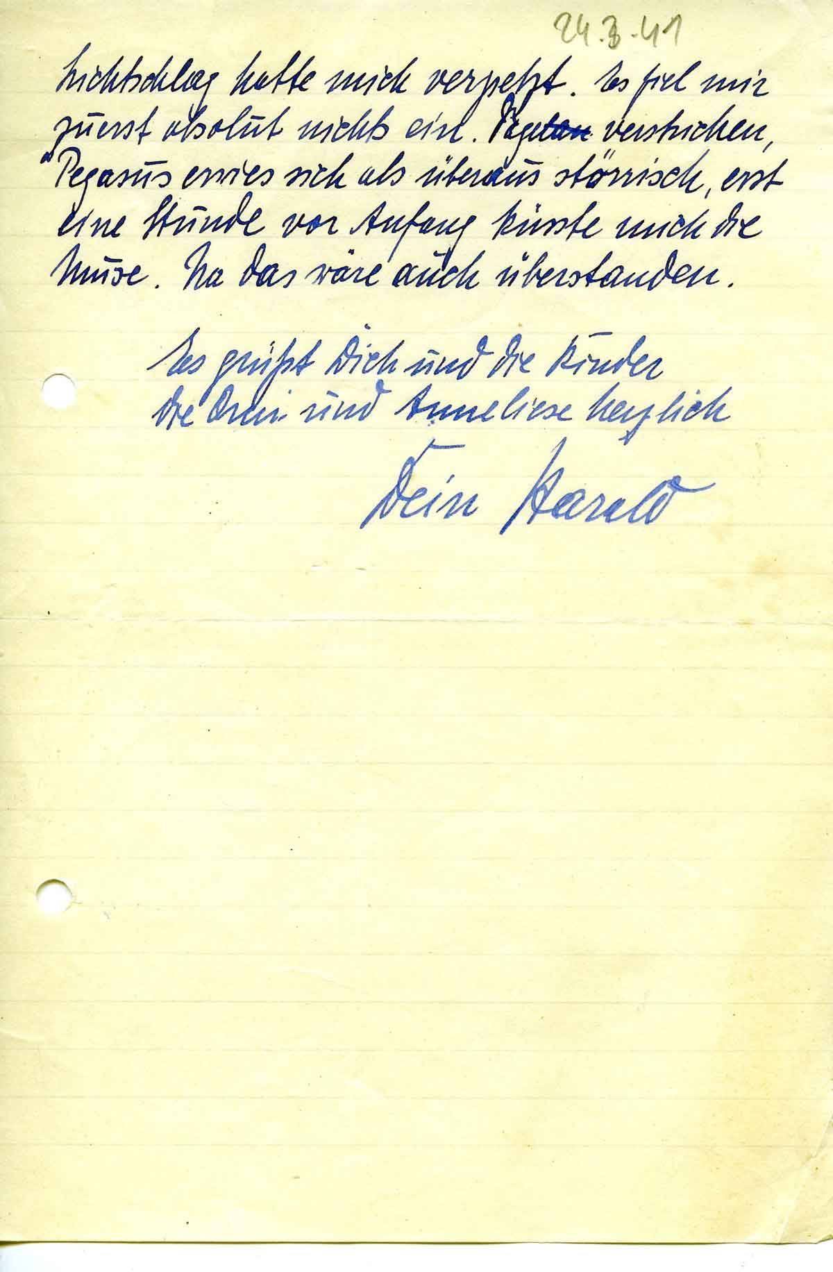 Harald Endemann an seine Frau Charlotte, 24. März 1941