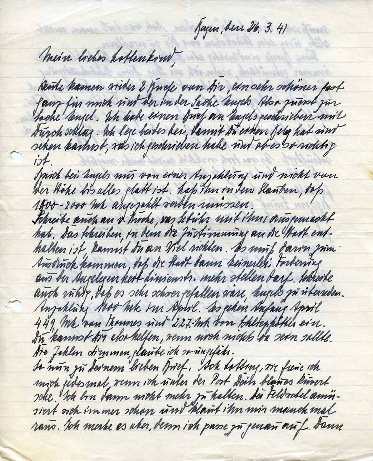 Harald Endemann an seine Frau Charlotte, 26. März 1941