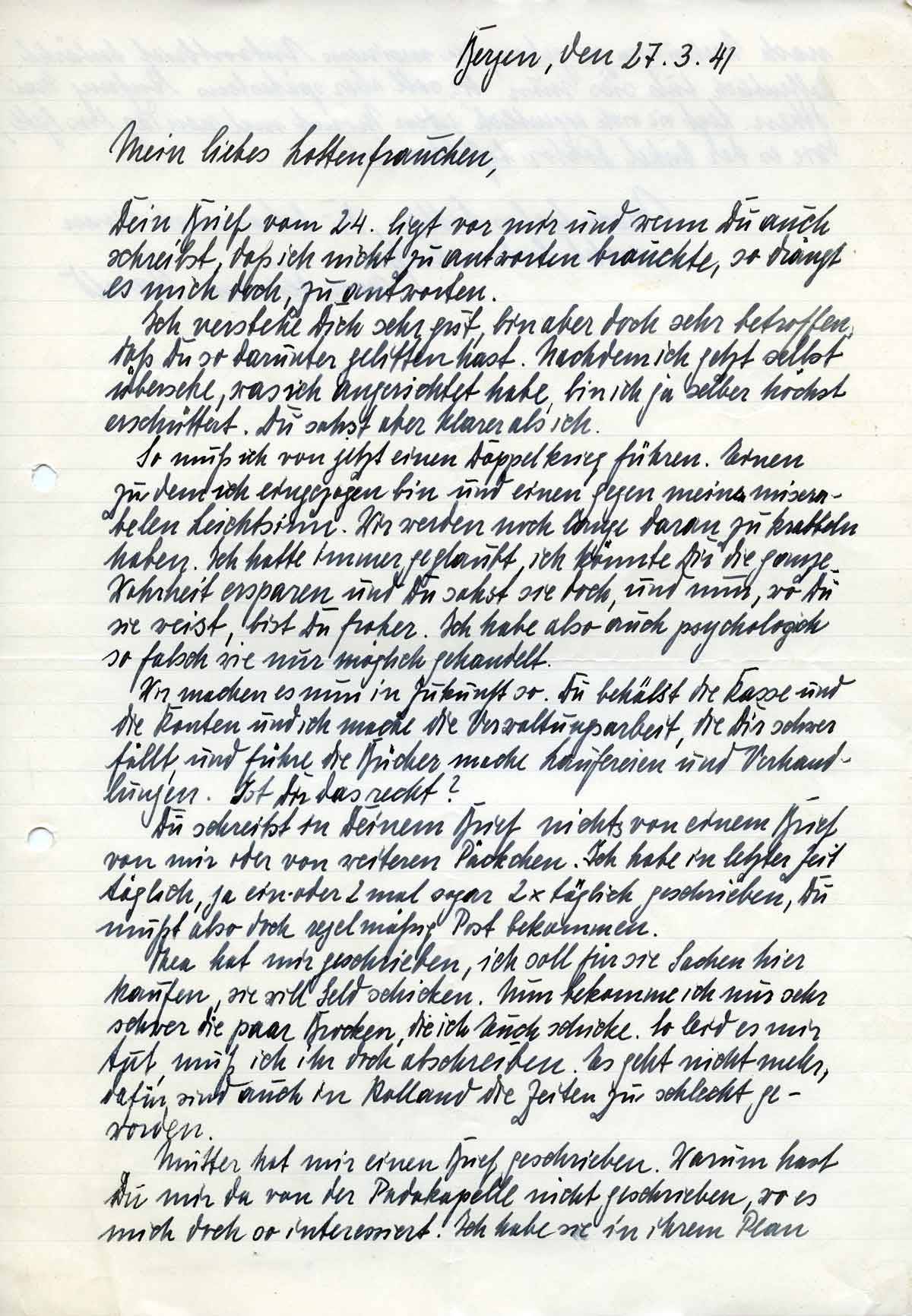 Harald Endemann an seine Frau Charlotte, 27. März 1941